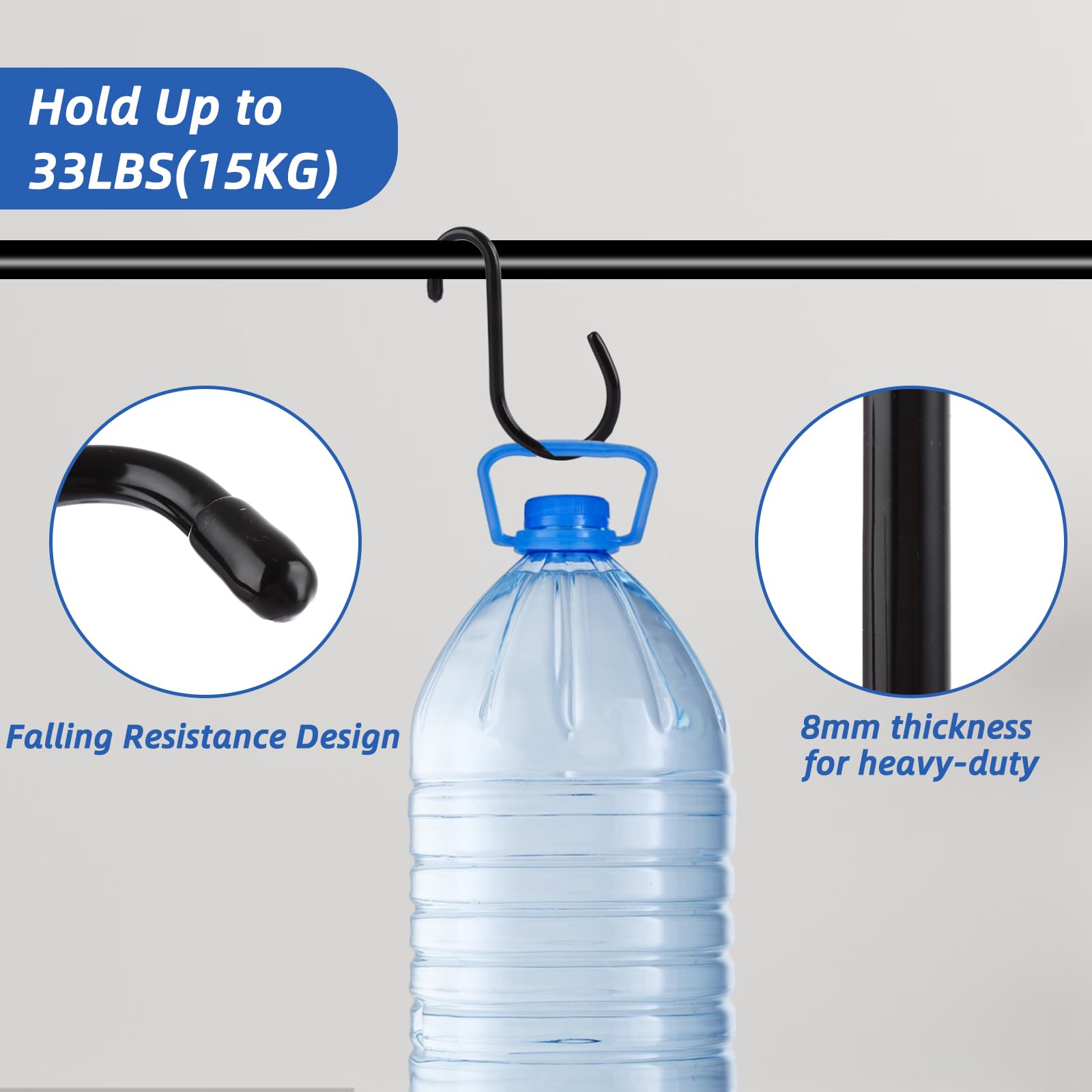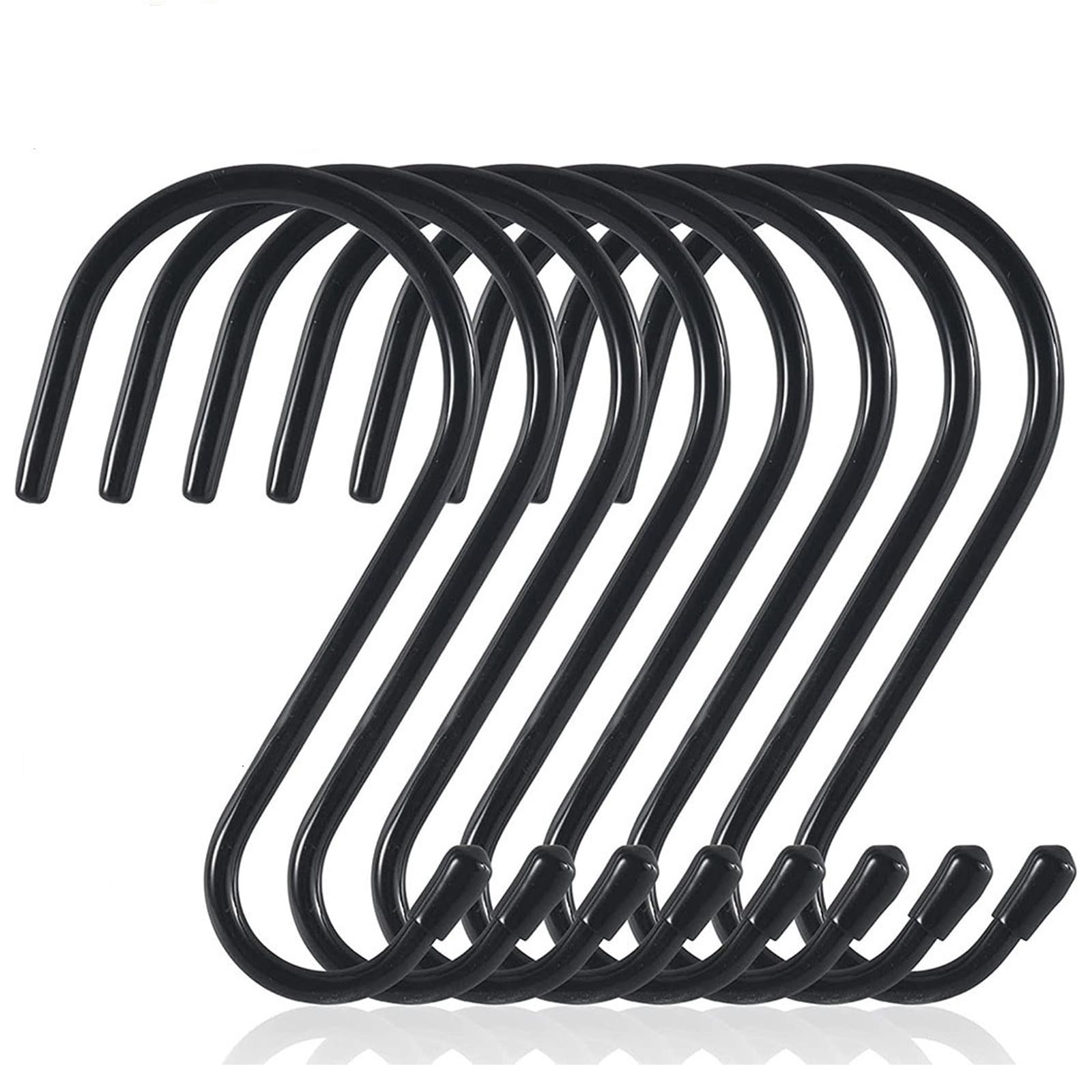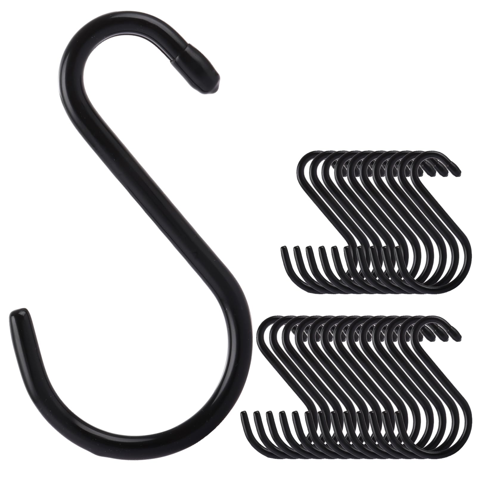 - Reliable Quality: Made of sturdy iron with a sleek black finish, these vinyl coated S hooks for hanging are built to last. Rust-resistant and sturdy 8mm wire supports up to 33lbs/15kg for secure, long-term use
