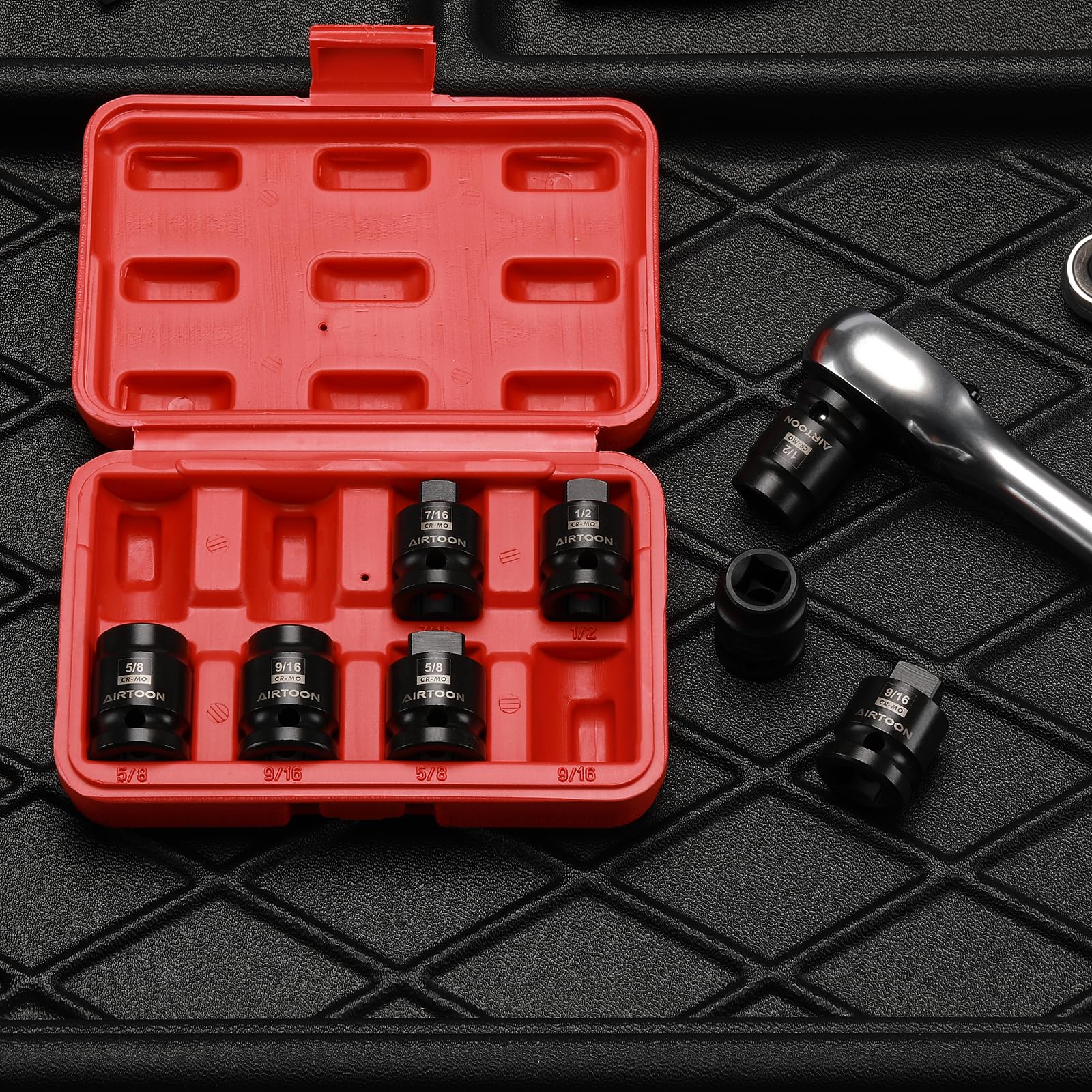 - This AIRTOON 1/2" drive pipe plug socket set includes male: 7/16",1/2", 5/8", 9/16; and female: 7/16",1/2",5/8”, 9/16".