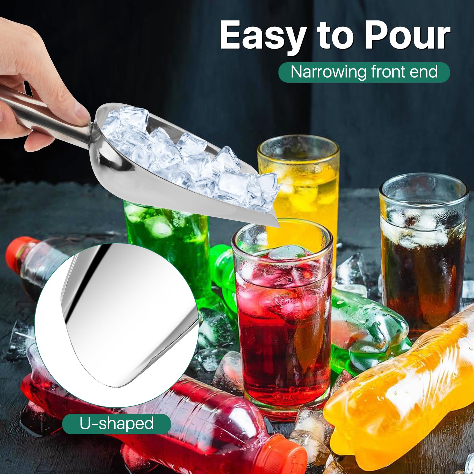 - 304 Stainless Steel: The ice scoop is made of food-grade 304 stainless steel, the mirror polished surface is smooth and burr-free, the laser welded handle is stronger and have good durability