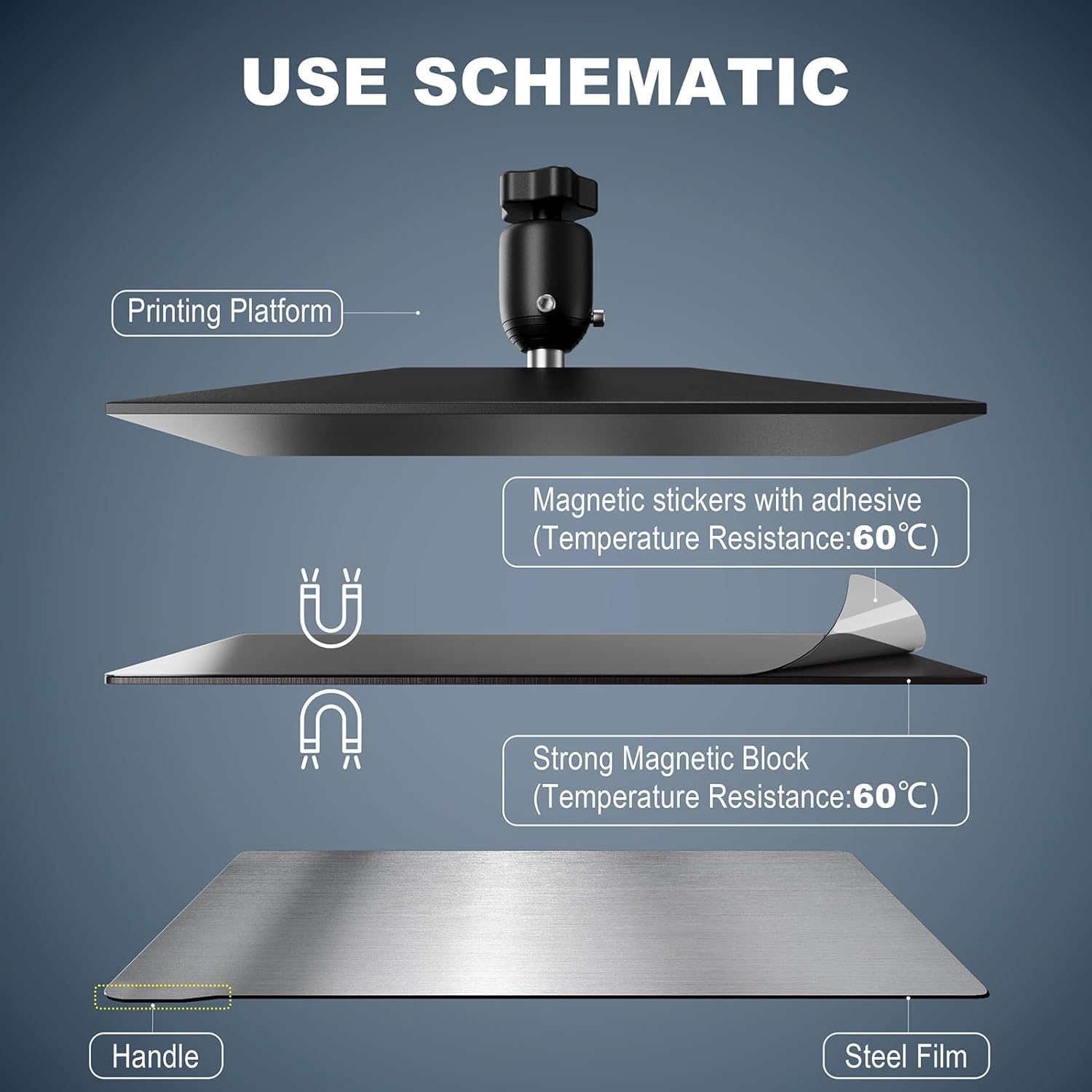 - Clever design: The magnetic printing platform is equipped with a handle that makes it easy to install and remove the magnetic printing platform.