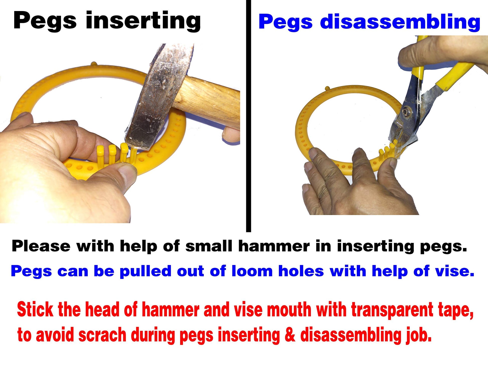 - 1. Environmentally friendly looms sets, looming pegs with buckle design, no glue, no formaldehyde,easy to be inserted into holes and pulled out(with the help of small hammer and vise), according to knitting needs.