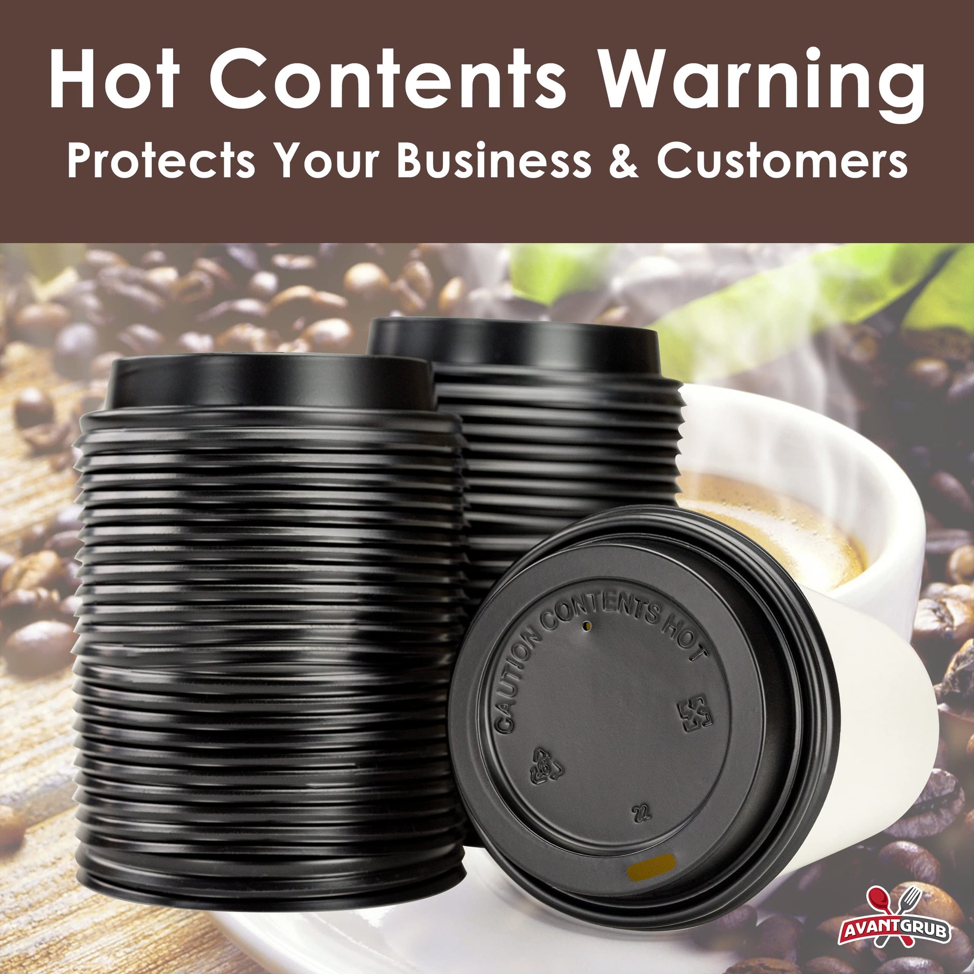 - HOT CONTENTS WARNING PROTECTS YOUR BUSINESS. Our thoughtful design keeps your customers safe from the hot contents inside their thermal takeaway cup. No one wants to burn their mouths from the heat of their cappuccino or hot chocolate!