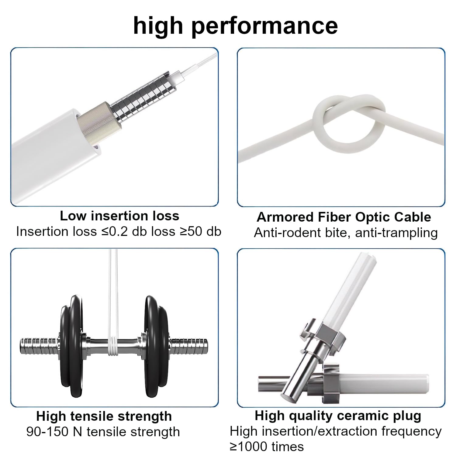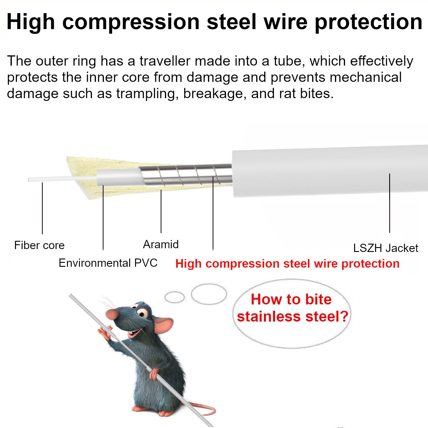 - Armored Fiber Optic Cableļ¼It has pressure and abrasion resistant specifications and is protected internally by a spiral stainless steel tube to protect the inner core (fiberglass) from damage such as pet chewing. Ideal for areas where cables may be pressurized