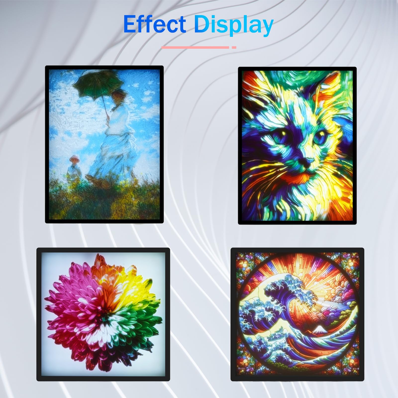Details: This Lithophane LED Backlight Board Kit contains: 4 LED panels, 4 interconnecting cables, and 2 touch-sensitive control wires.