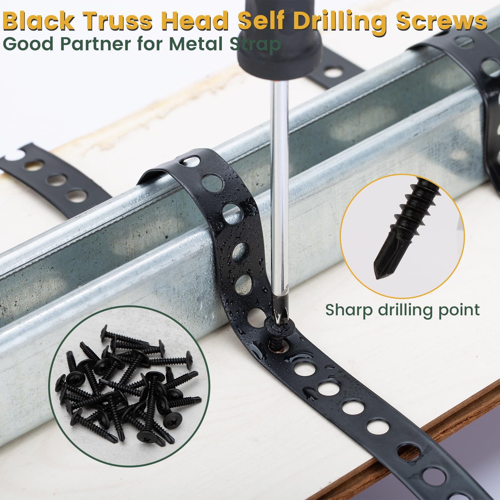 - Comes with 30 PCS Black Truss Head Self-Drilling Screws - Featuring sharp drilling points that easily penetrate various materials. Made of High hardness carbon steel, providing strong support for installation tasks.