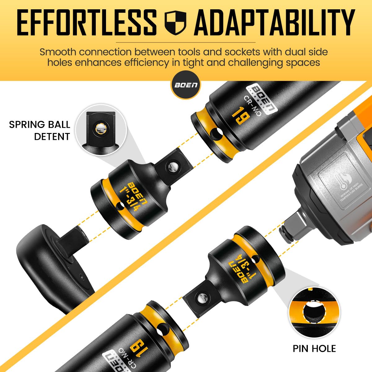 BOEN PRO 1" F to 3/4" M Impact Socket Reducer, Impact Driver Conversions for Impact Wrench, CR-MO Steel, Embossed and Painted Marking