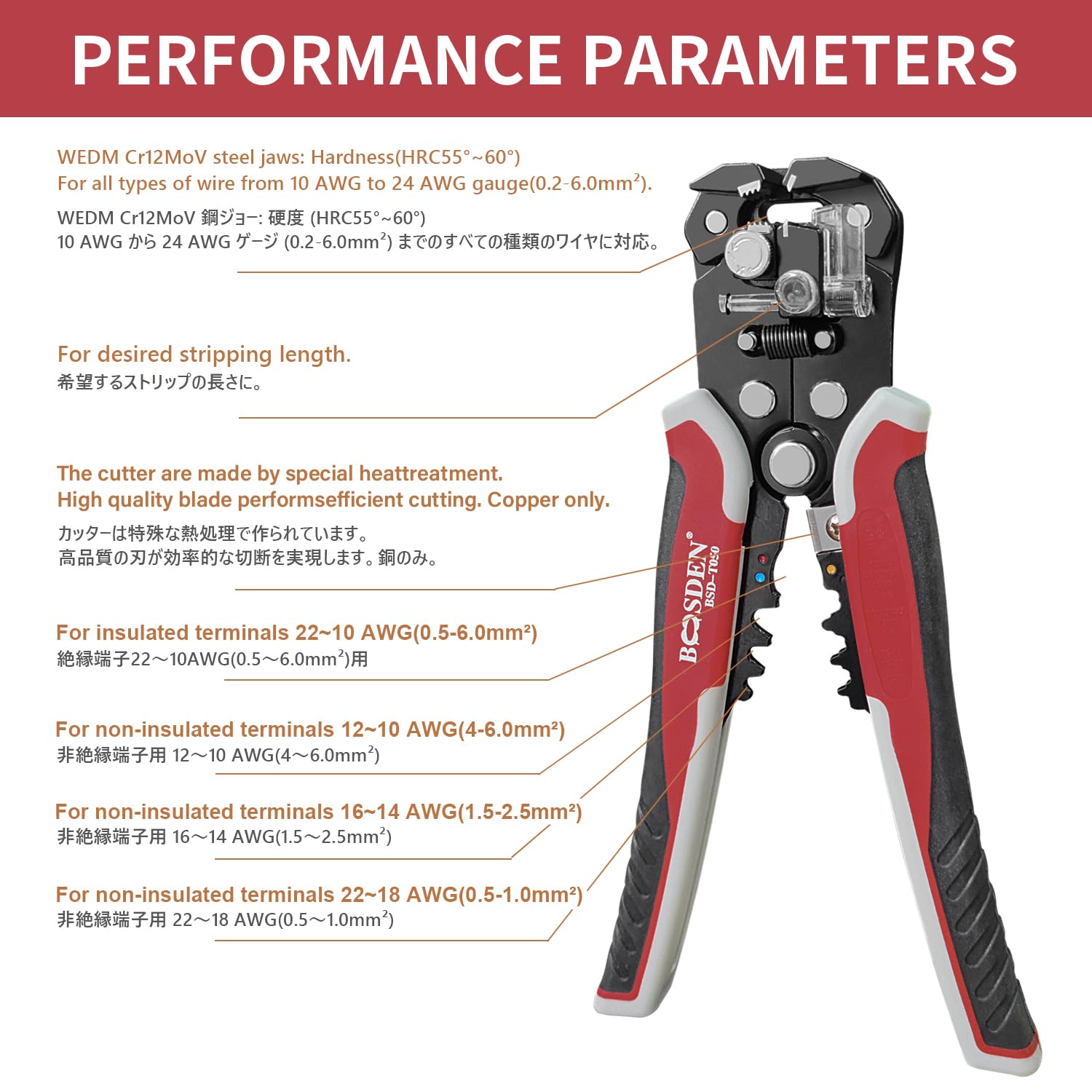 - 【Versatile 3-in-1 Wire Stripper】BOOSDEN Wire Stripper is a multi-functional wire stripper tool that can strip, crimp, and cut wires. It is capable of stripping wires ranging from 10-24 AWG, making it suitable for a wide range of electrical work