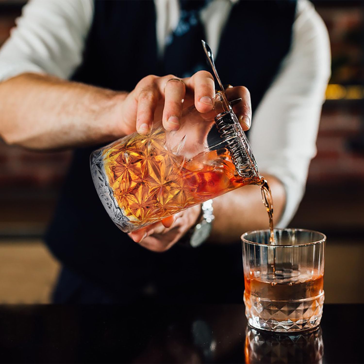 - What You Get:You will get a fashioned cocktail mixing glass set and friendly customer service.Please contact us if you are not satisfied with our product,we are more happy to help you.