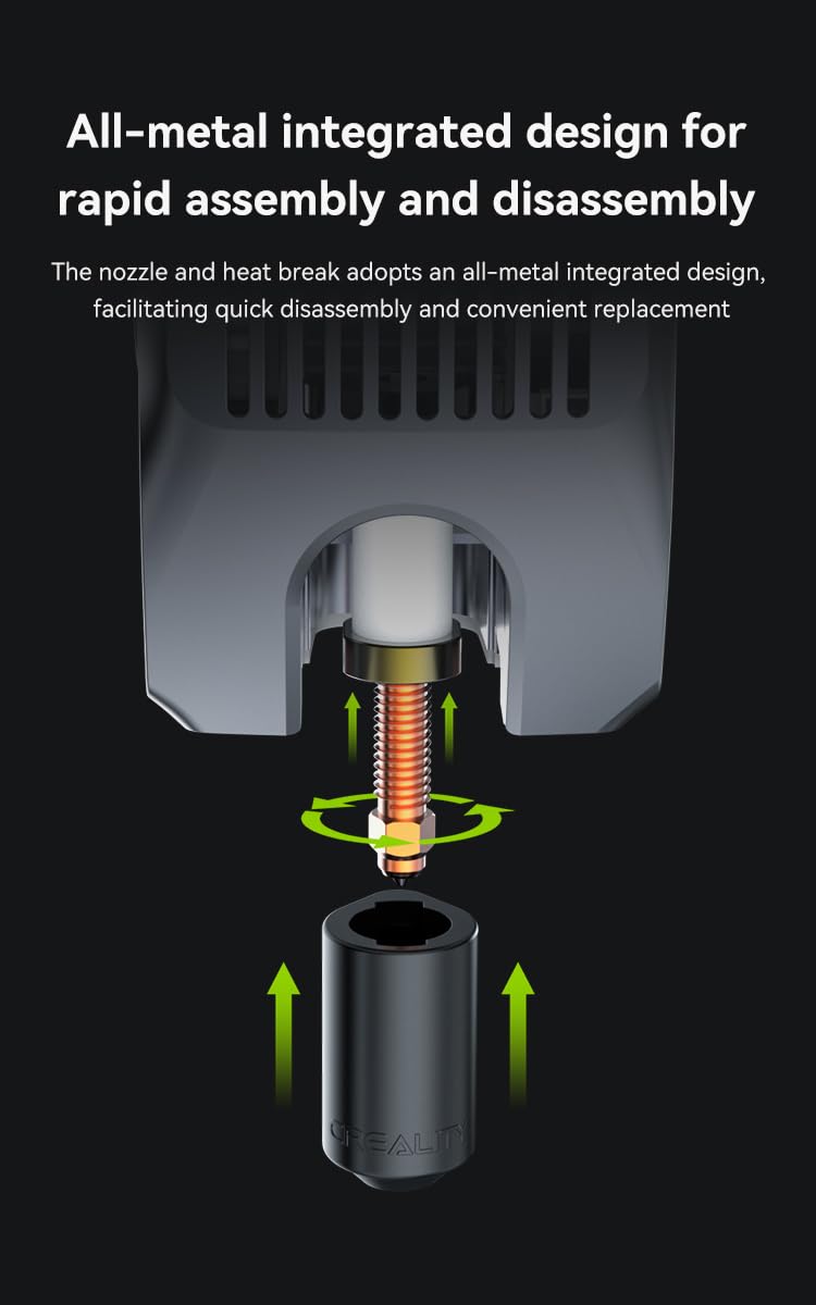 The nozzle and heat break adopts an all-metal integrated design, facilitating quick disassembly and convenient replacement