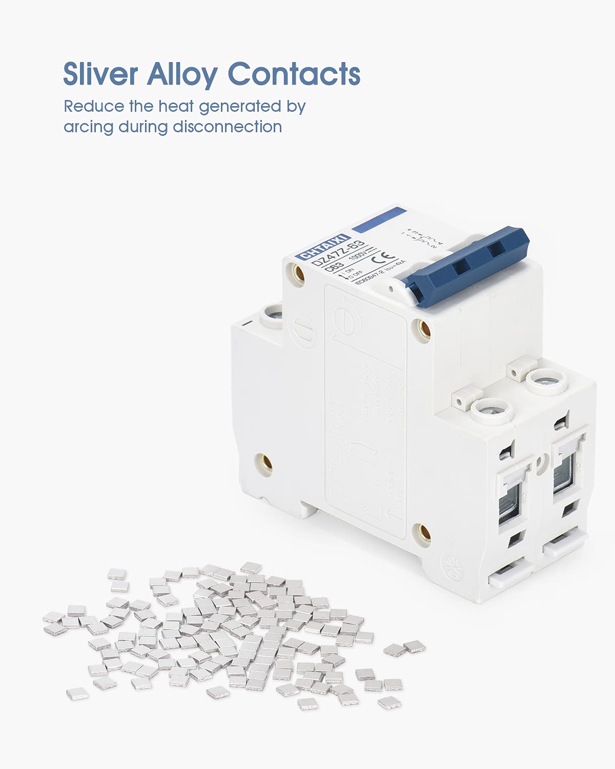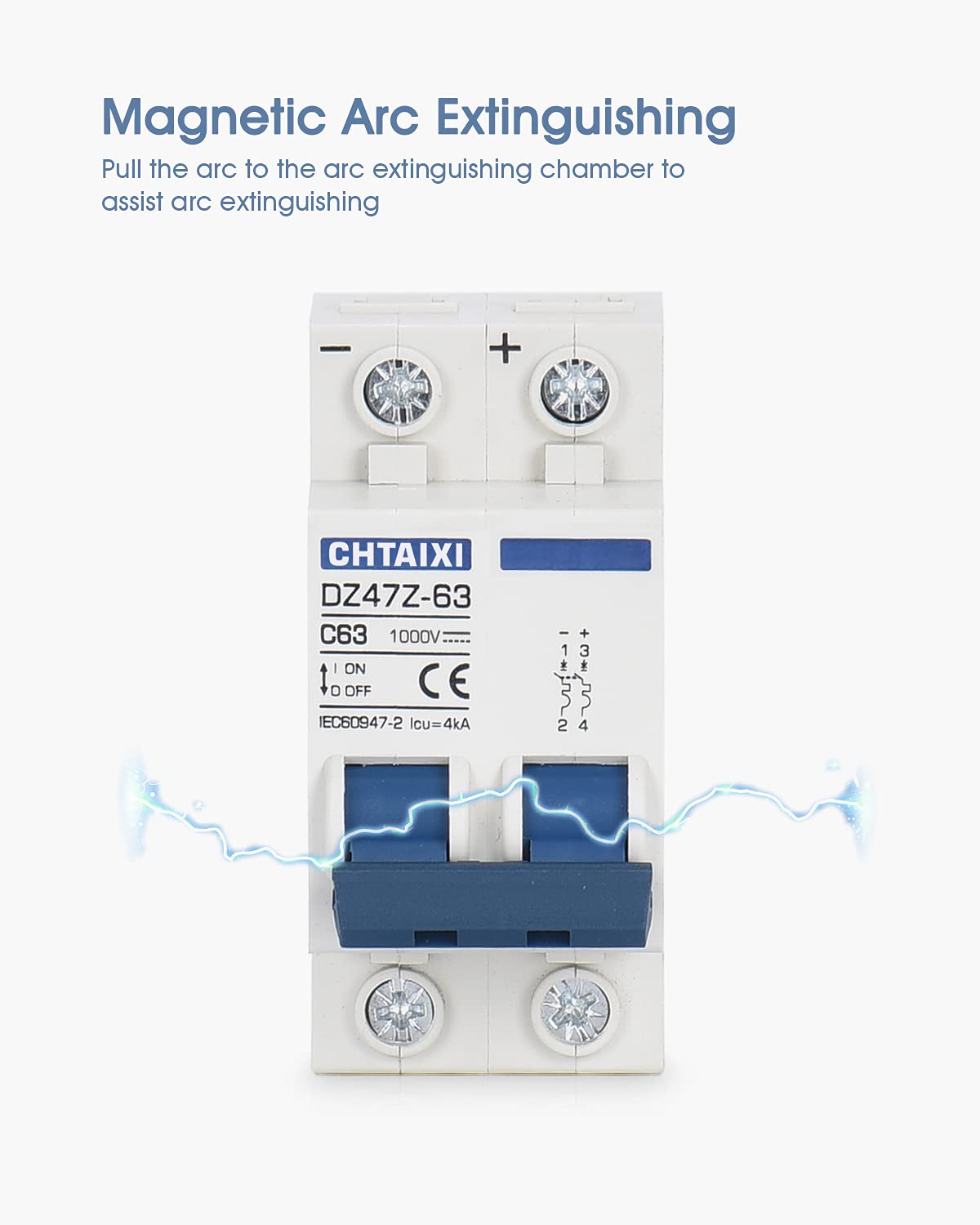 DC Miniature Circuit Breaker, 2 Poles 1000V 63 Amp Isolator for Solar PV System, Thermal Magnetic Trip, DIN Rail Mount, Chtaixi Mini Breaker C63