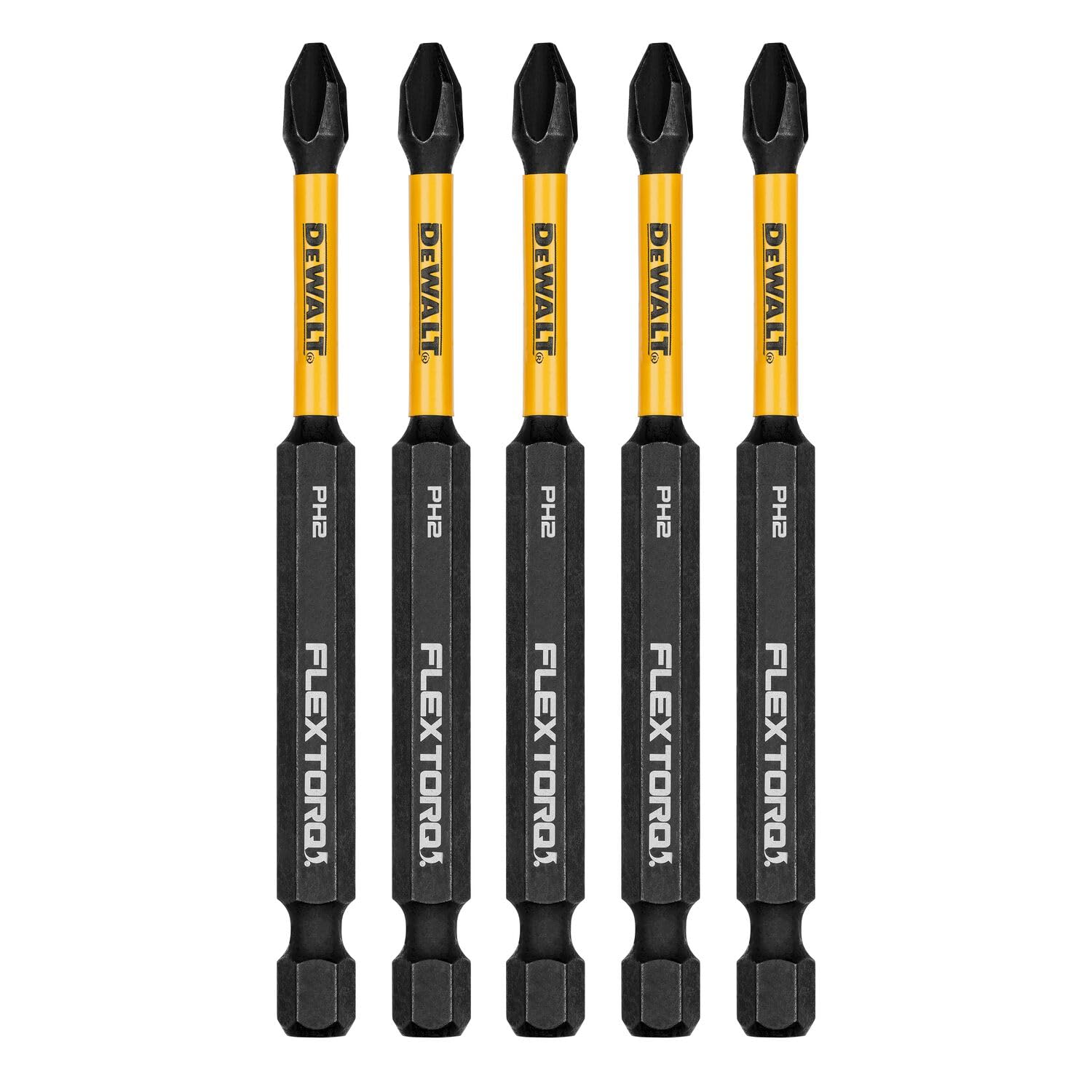 DEWALT FLEXTORQ Philips #2 Bits 5Pk 1/4 x 3-1/2in for Impact Drivers & Drills, Hex Shank (DWAF3PH2IR5)
