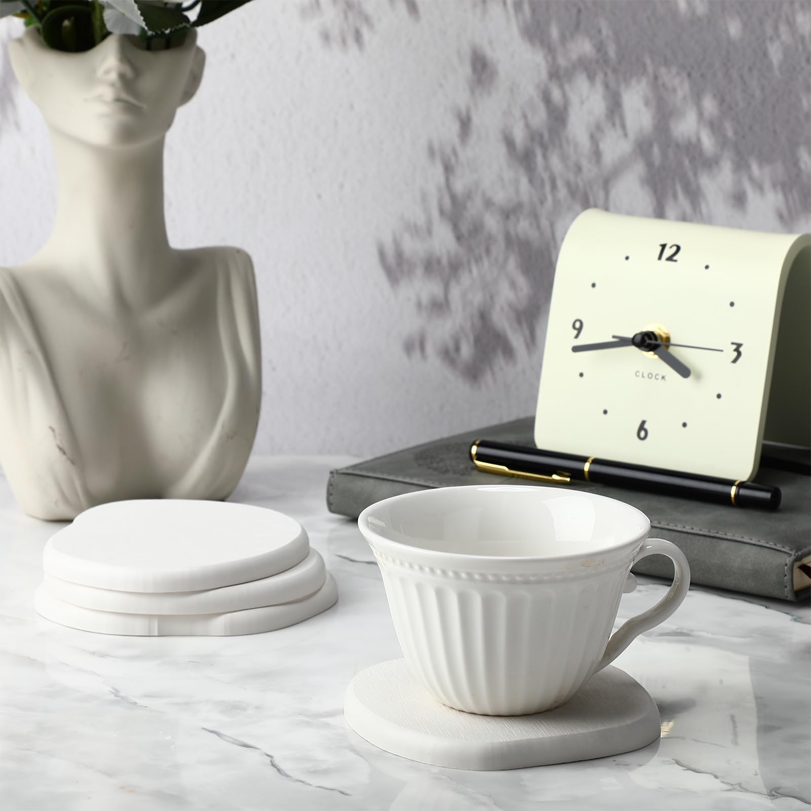 Diatomaceous Earth Coasters Set of 4,Cool Absorbent Quick-Dry Drink Coasters for Desks, Cute Modern Stone Design with Stylish White Aesthetic (White, 8)