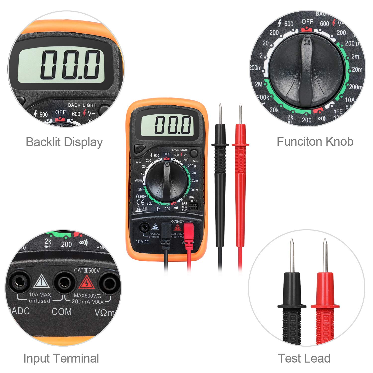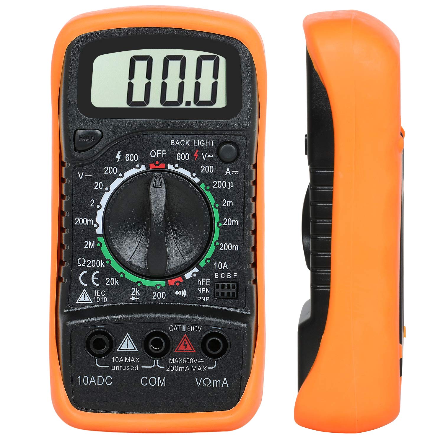 Removable thick rubber casing protects the multimeter from splashes and minor bumps.