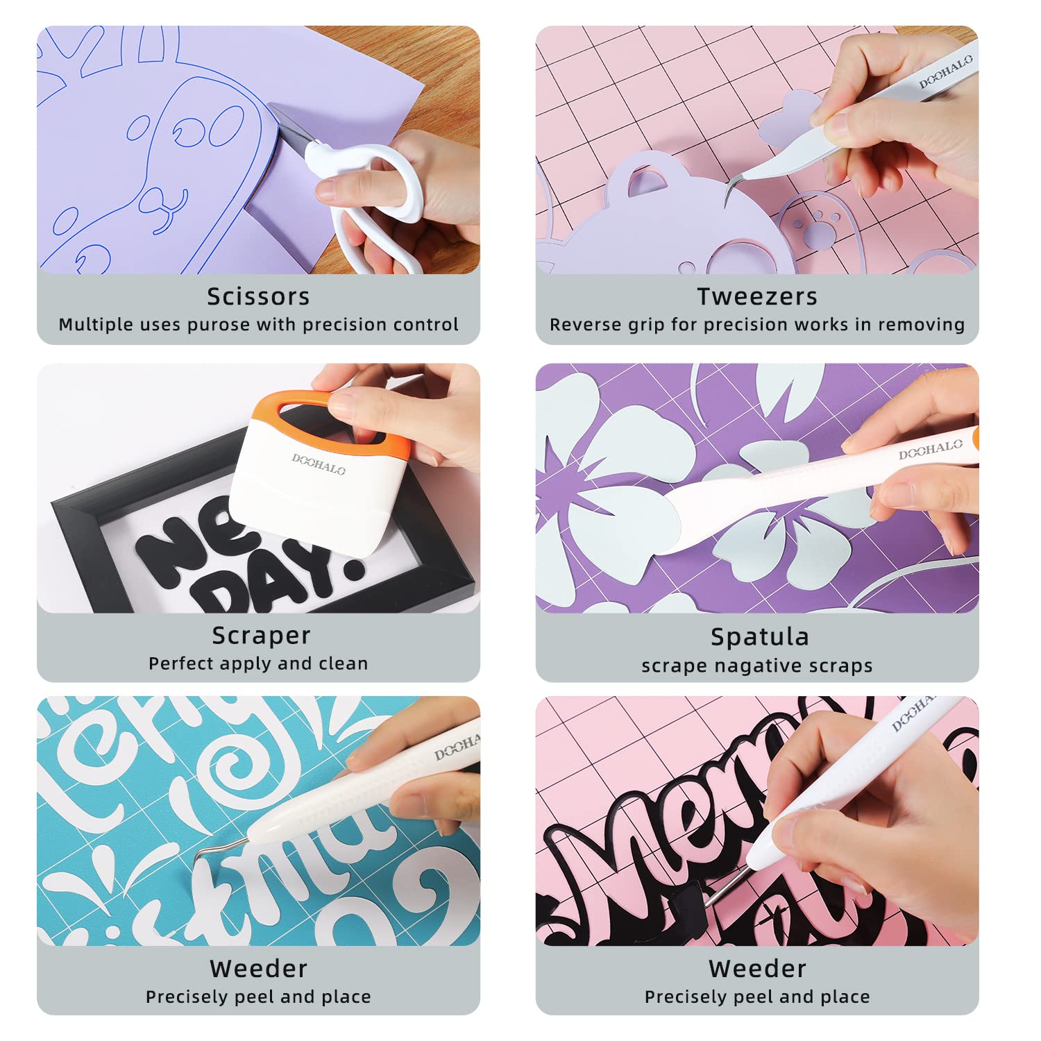 - Weeding Tools for Cricut: Scraper tools perfectly work with vinyl material applying to cutting mat, which give extra press to sticky. Spatula tools are good for the scrape negative scraps and small areas cleans and applies. Just a basic accessories tools for Cricut works in vinyl , paper, iron HTV etc.