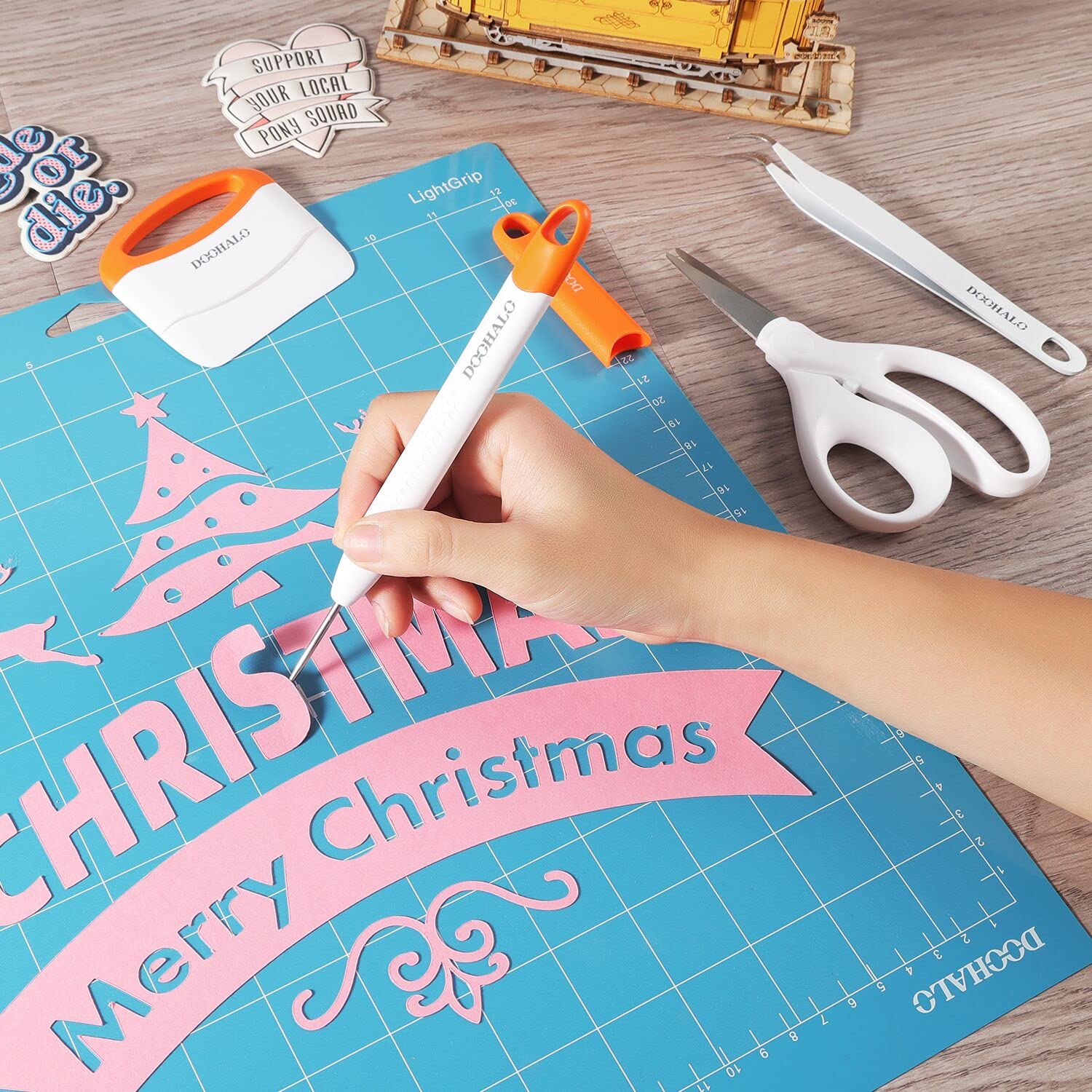 DOOHALO Brayer Roller Vinyl Weeding tools for Cricut Tools Crafting Basic Accessories Set Kit for Silhouette Weeding scraper spatula tweezers scissors basic tools bundle for sewing