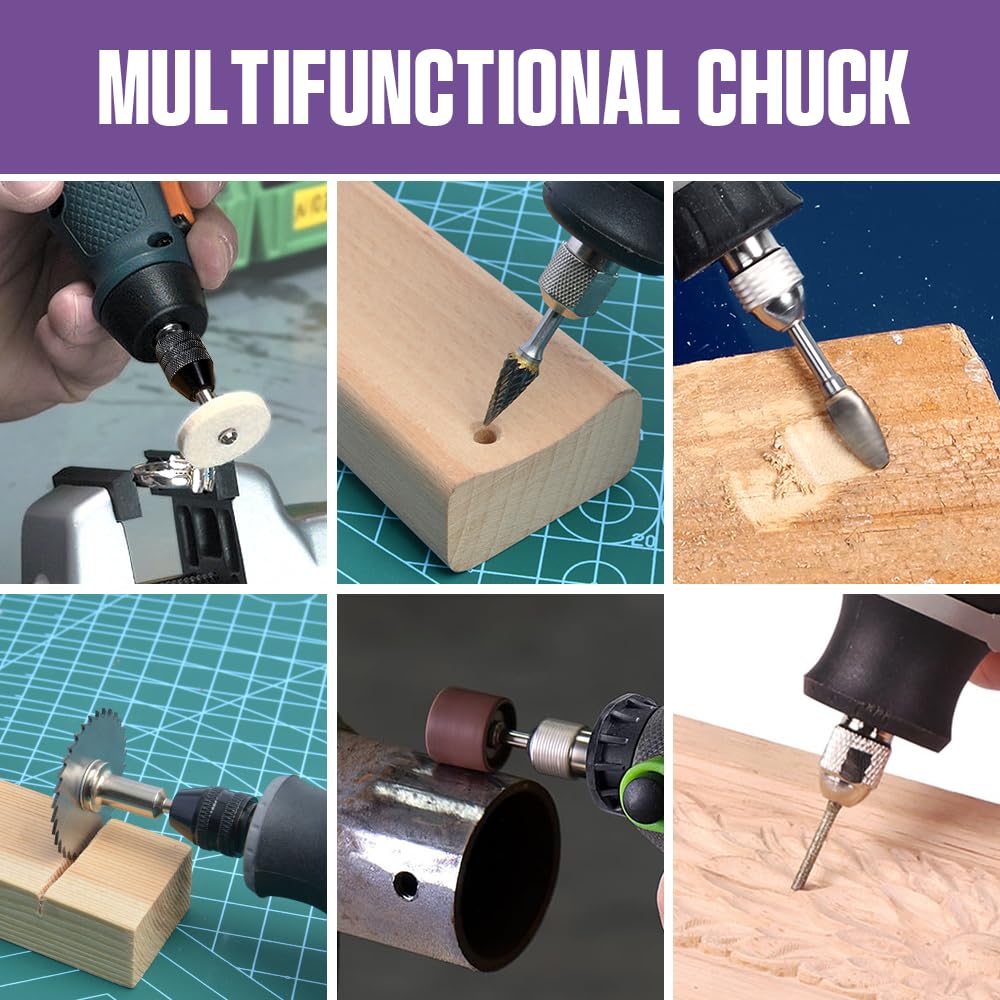 - Multifunctional: This drill chuck collet set is compatible with most rotary tools you meet on the market. Whether it's a drill, polishing wheel or cutting wheel etc, it's easy to handle. Suitable for electric grinders, drills, extension flexible shafts, engraving machines and other polishing and sanding tools.