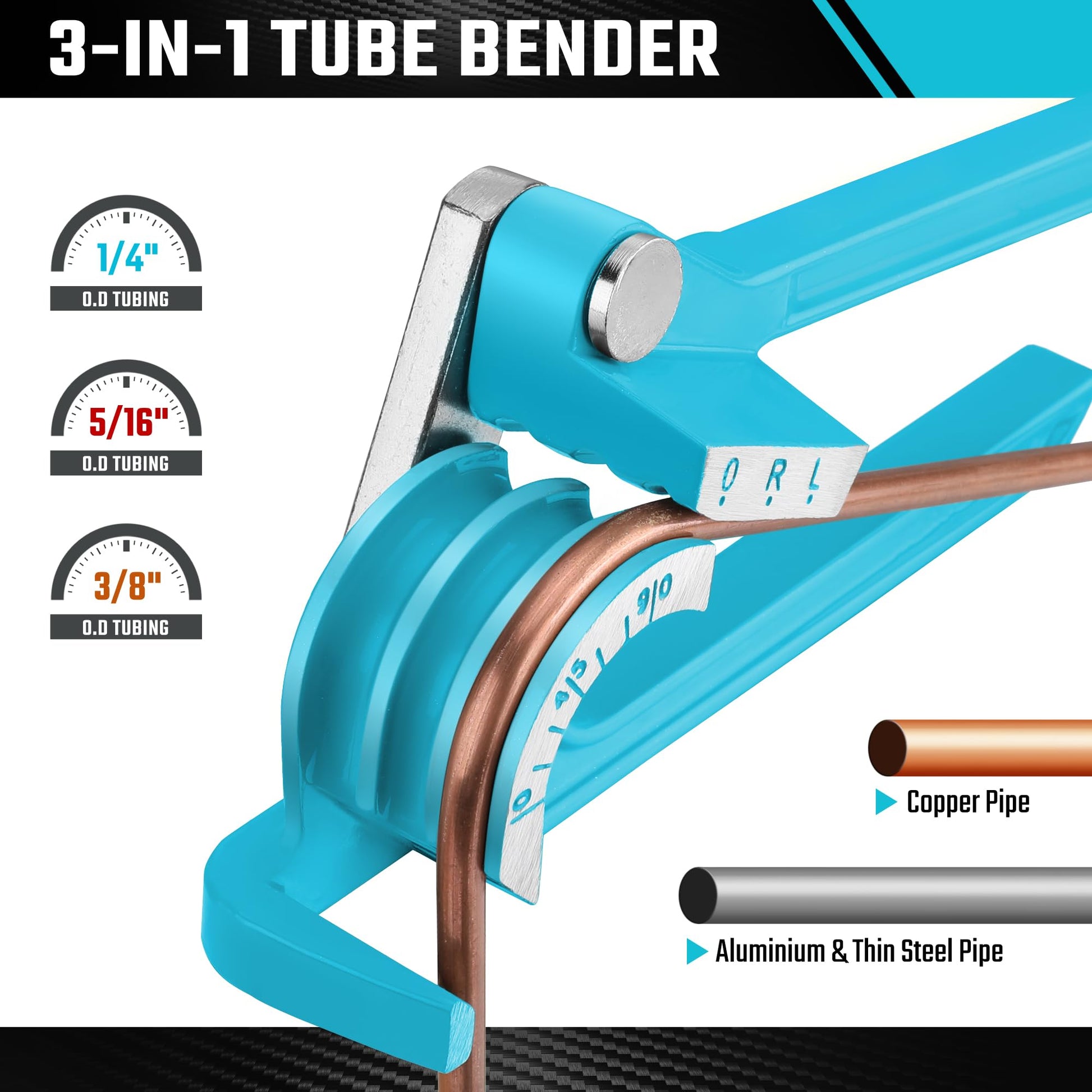 DURATECH Tube Bender, Pipe Bender, 3-IN-1, 1/4", 5/16", 3/8", for Copper, Brass, Aluminum and Thin Steel Pipes, Blue