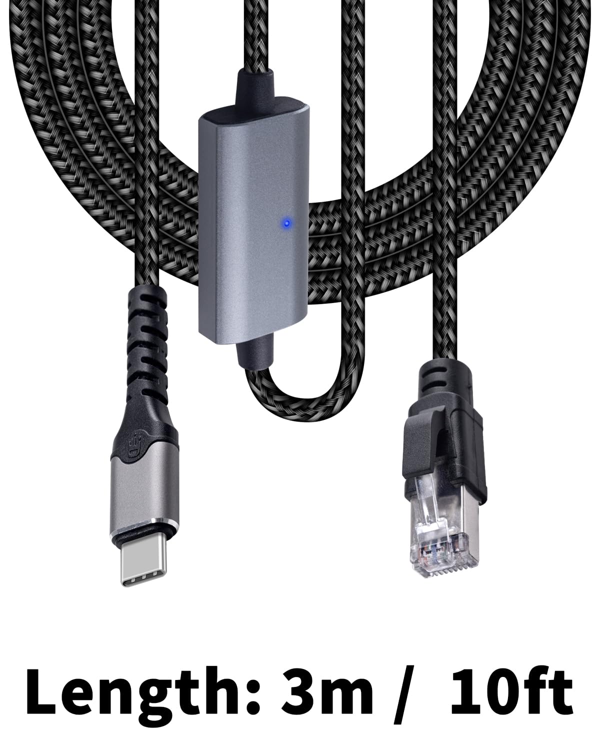 - This is a compact nylon Ethernet cable adapter with a length of 3 meters, allowing you to use it without worrying about distance limitations. It doesn't take up much space and won’t put too much pressure on the USB C port. Whether for streaming, gaming, or working from home, this cable provides excellent speed and reliability, making it an essential accessory for anyone looking to enhance their wired internet connection