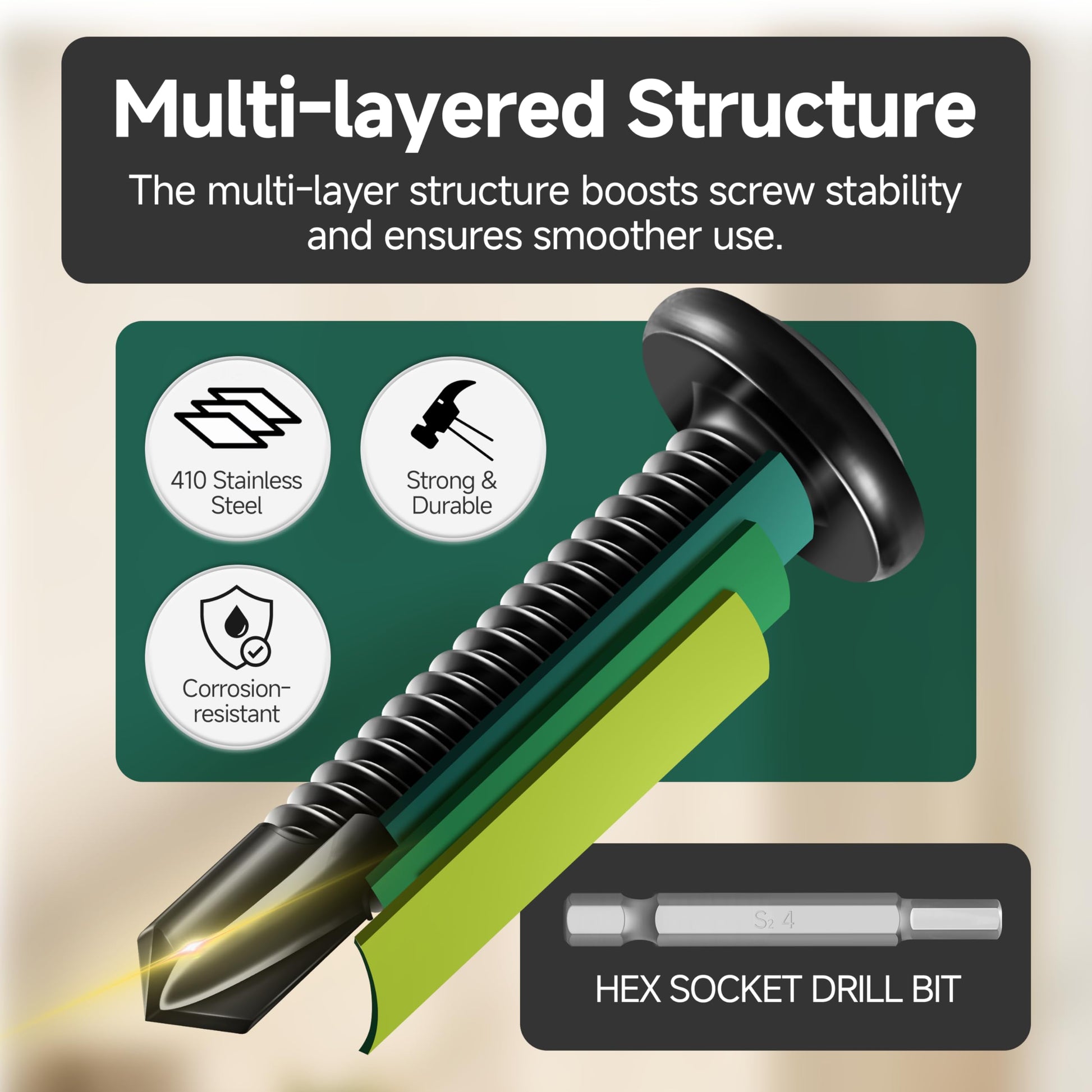 - Value Pack & Easy to Install – Includes 100 stainless steel self-tapping screws with Allen socket drive. Self-drilling design reduces slippage and ensures fast, smooth installation. Perfect for metal, wood, or plastic in home, office, or workshop use. Works as self-tapping screws, self-drilling screws, or metal screws — ideal for all your fastening needs.