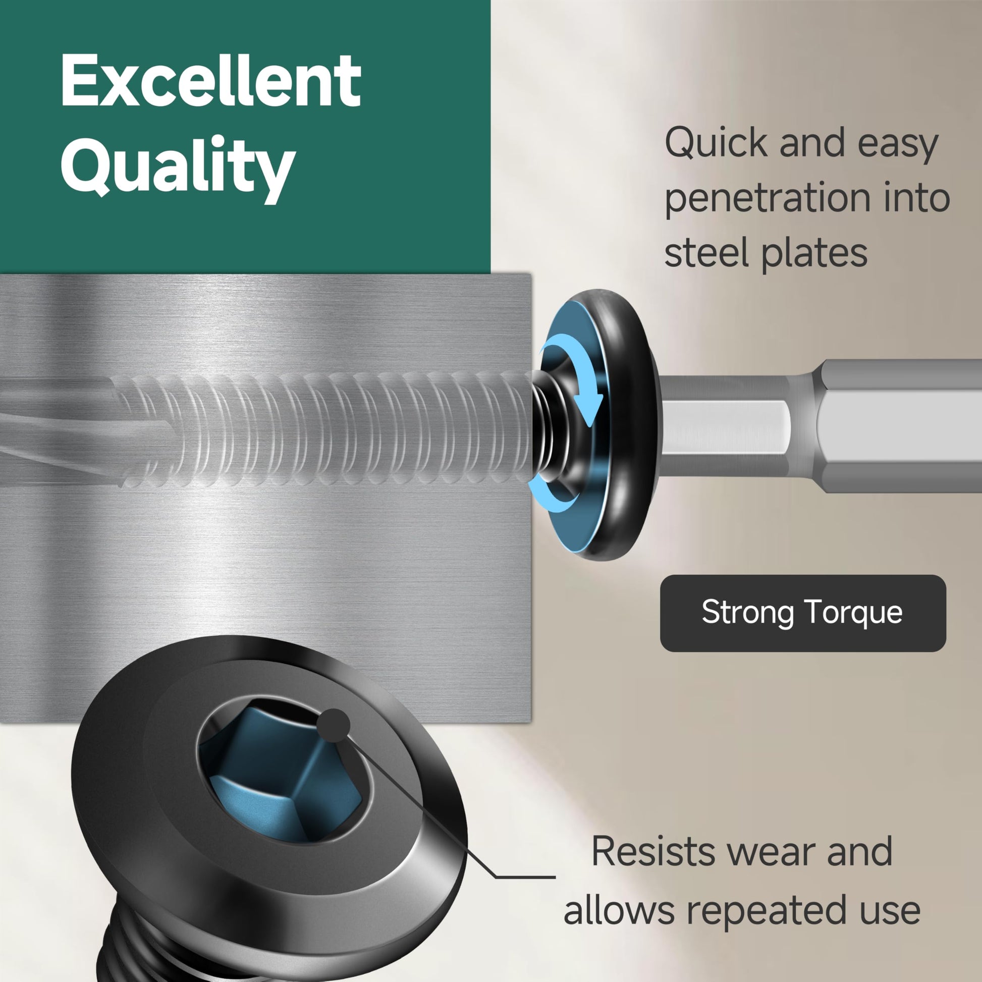 - Strong Grip & Effortless Installation – Designed with a Phillips drive and truss head, these sheet metal screws provide reliable holding power, reduced slippage, and even pressure distribution for a secure and professional finish. With self-tapping and self-drilling features, they cut through metal and other tough materials easily, eliminating the need for pre-drilling and ensuring quick, efficient installation.