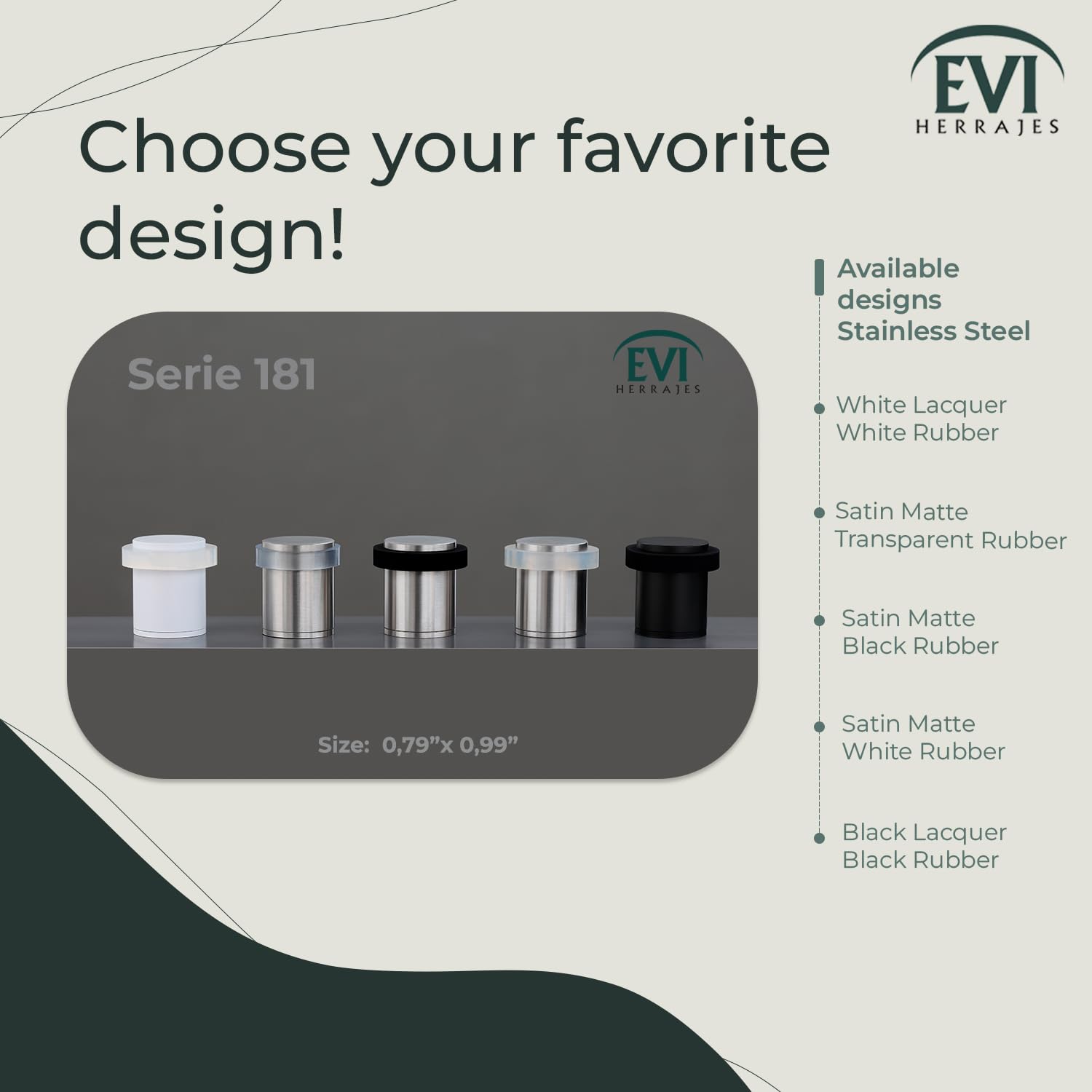 EVI | Floor Doorstop | 25X20cm | Threaded Base | Black Lacquered - Black Rubber | Stainless Steel | Includes Screw + Clamping Anchor | Mod I-181