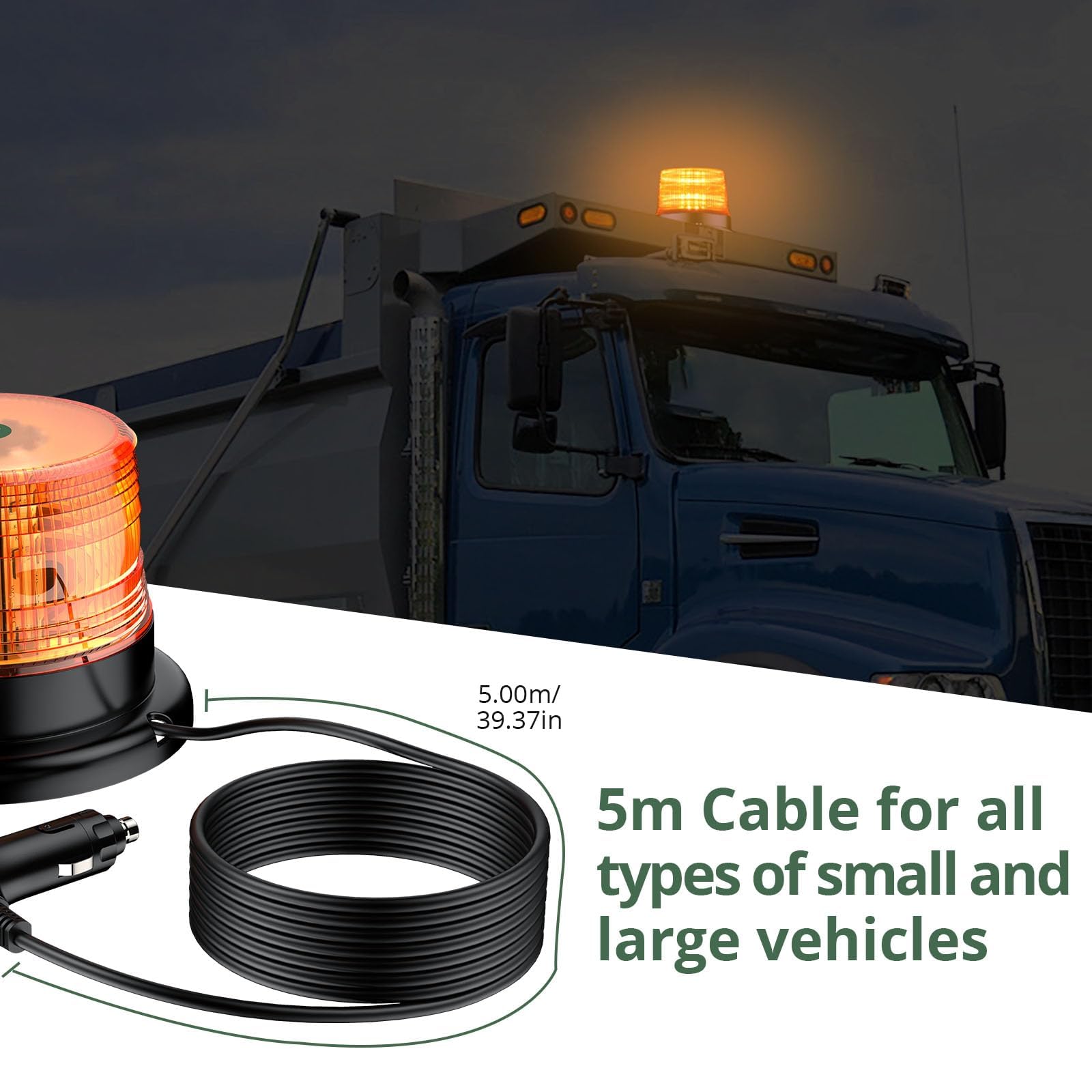 - 5M/16FT Cable: Easy to insatll, EYPINS car truck suction roof rotating light with 5m/16ft straight cable more convenient to use compared to spring wire, attach the beacon light to any metal plate and insert it directly into the 12V/24V power socket adapter