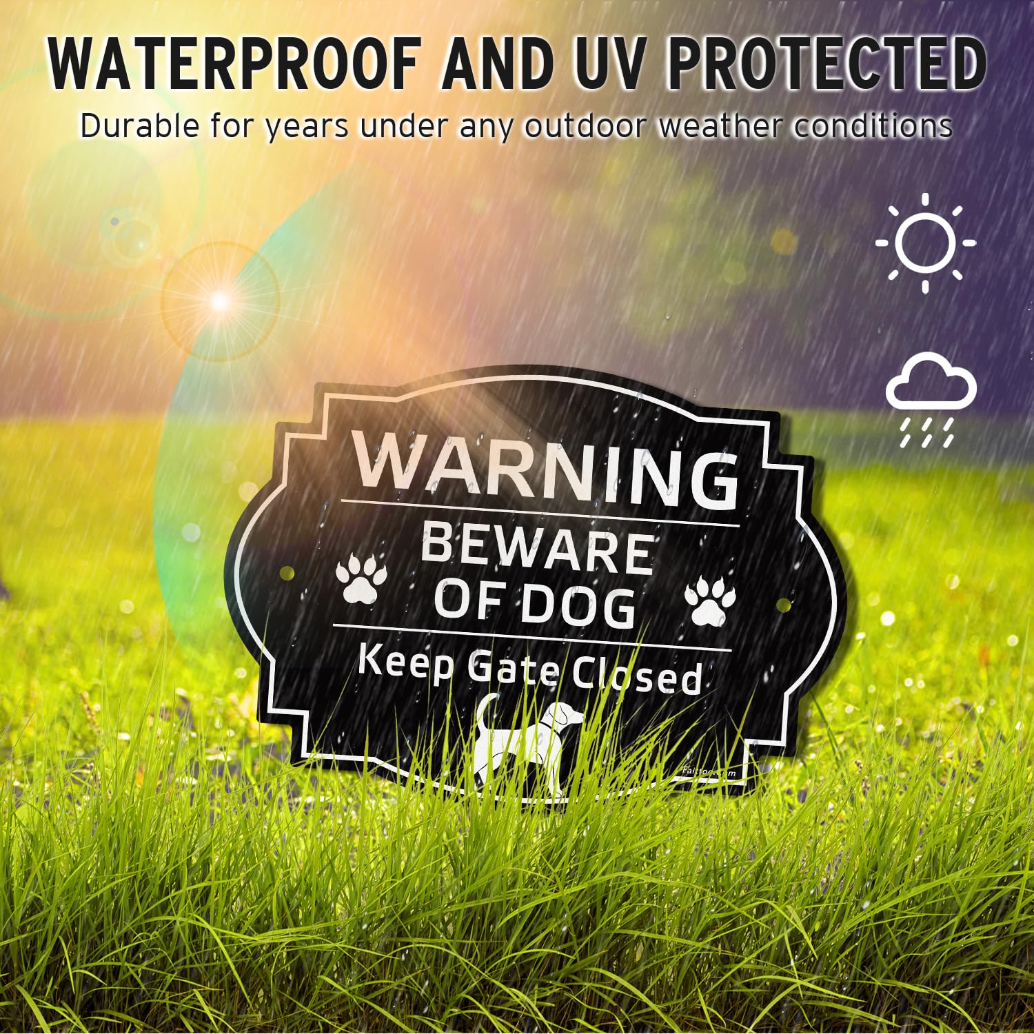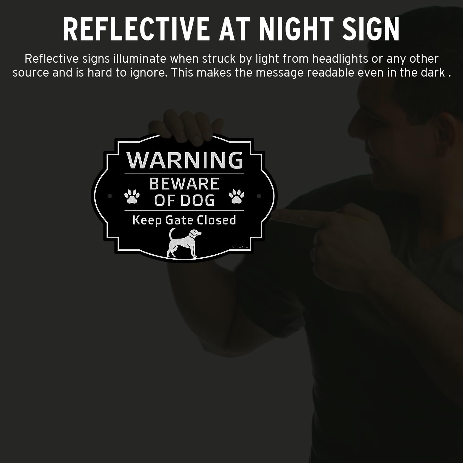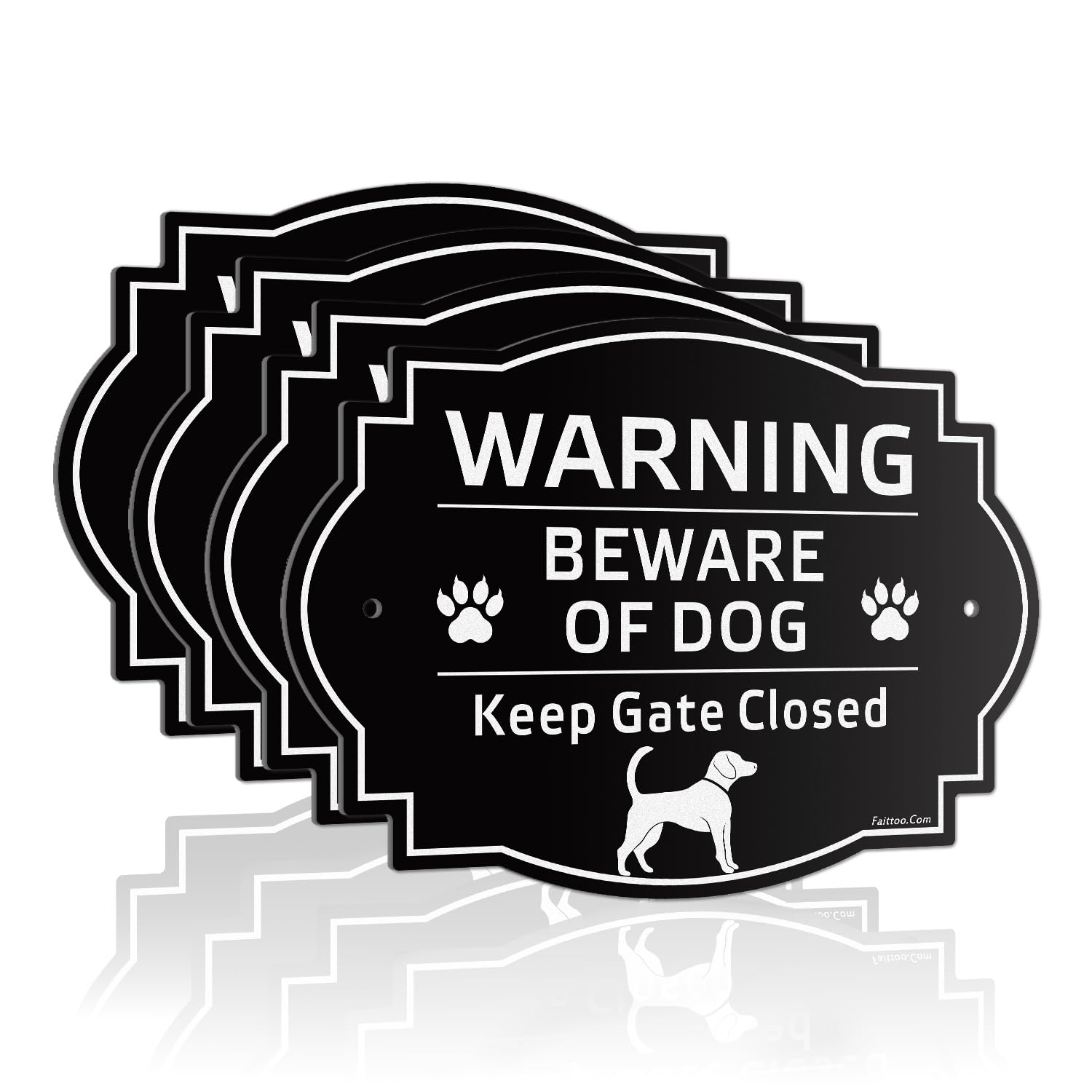 Faittoo Beware of Dog Sign Outdoor, Keep Gate Closed Sign, 4 Pack 10"x7" Rust Free Reflective Aluminum, Fade Resistant, UV Protected, Weatherproof, Warning Dog Sign for Door or Gate