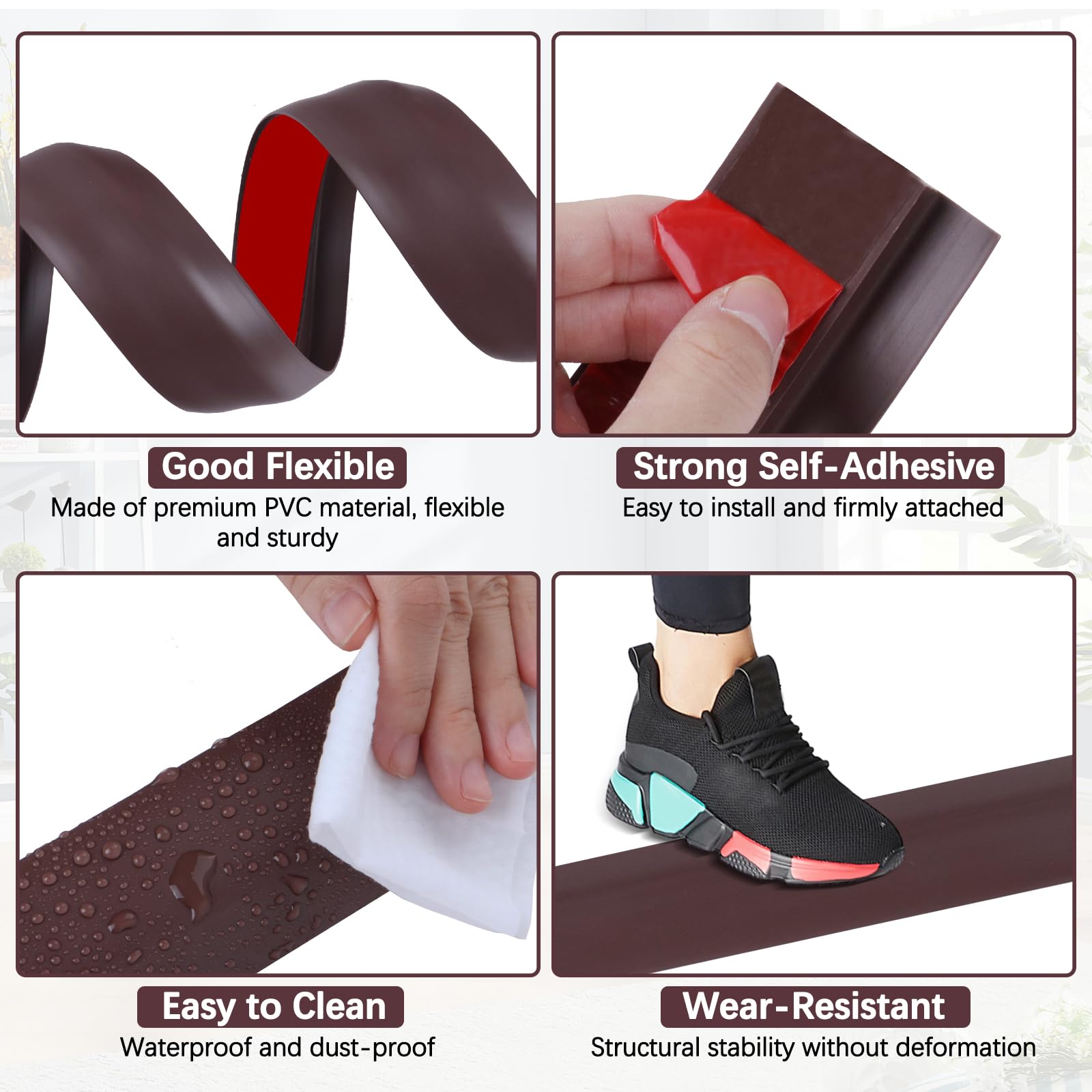 - High Quality: Our Threshold transition strip is made of high-quality PVC materials for durability and longevity. The surface of the rubber threshold strip is scratch-resistant, abrasion-resistant, dirt-resistant, which means it’s easy to clean and not stain.