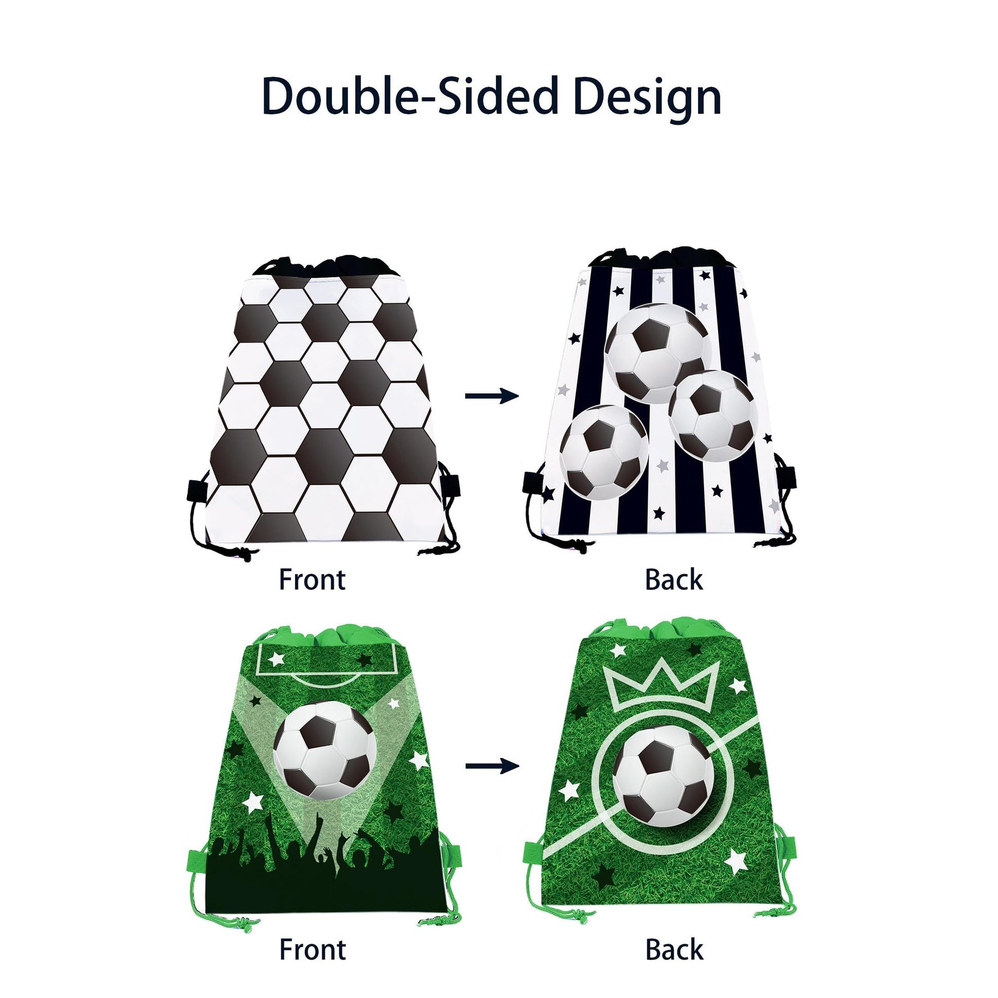 - Package Content: 12pcs soccer drawstring bags in 2 styles, double faced design with 2 different patterns printed, green and black. Sufficient quantity not only can meet your personal needs, but also can be shared with family and friends