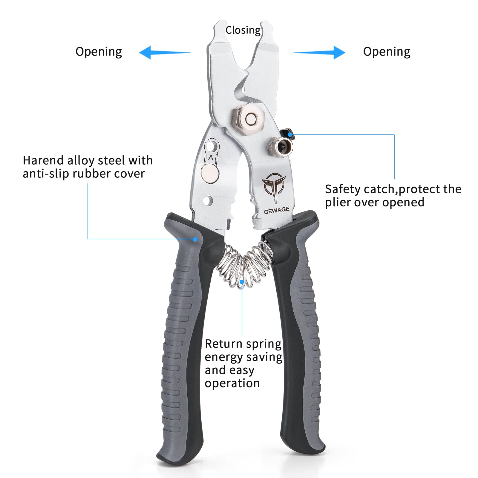 GEWAGE Bike Bicycle Pliers- 5 in 1 Bike Tool Kit for Cable Cutter/Chain Quick Link Switch/Cable Reaming/Spare Master Link/Inner Cap Clamp - Professional Bicycle Tool with Bicycle Missing Link