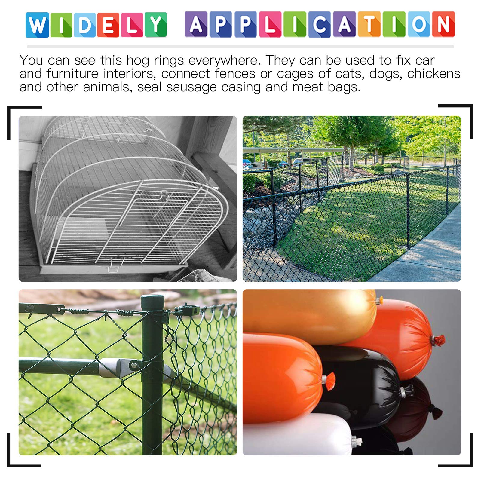 - ♛【Widely Application】: You can use these hog rings everywhere. They can be used to fix car and furniture interiors, connect fences or cages of cats, dogs, chickens and other animals, seal sausage casing and meat bags.