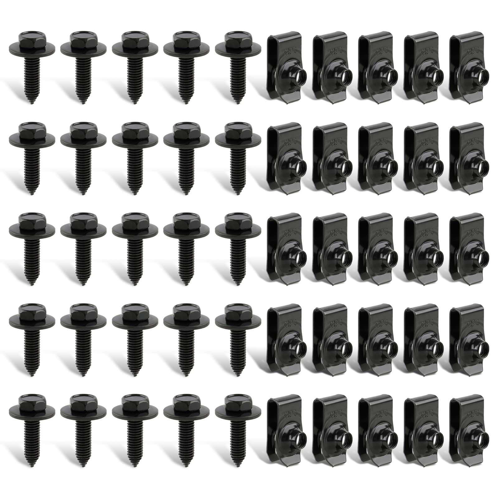 GoaMotors 50PCS 1/4 Body Fasteners - 25 Bolts & 25 U-Nut Clips for Fender, Engine Cover & Splash Shield