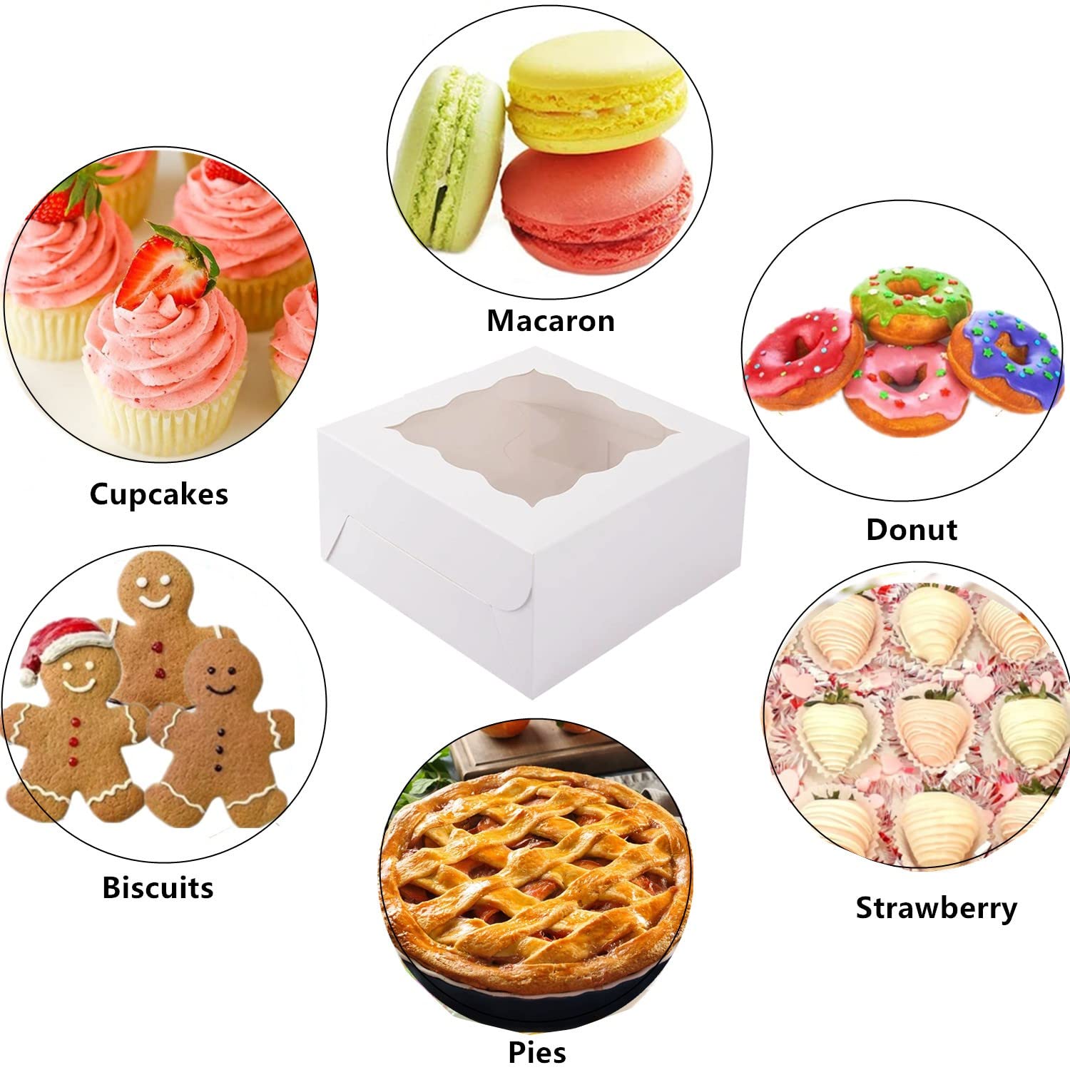 - 🍩 Sutible Occasions: These bakery pies boxes with window are perfect for your small cakes, cupcakes, muffins, biscuits, pies, desserts, pastries, cookies, donuts and so on. These pie boxes with window will be ideal for all occasions, such as weddings, baby shower, bridal shower, birthday, Thanksgiving, Christmas, graduation, thank you favors, bake sale, holidays and special occasions.