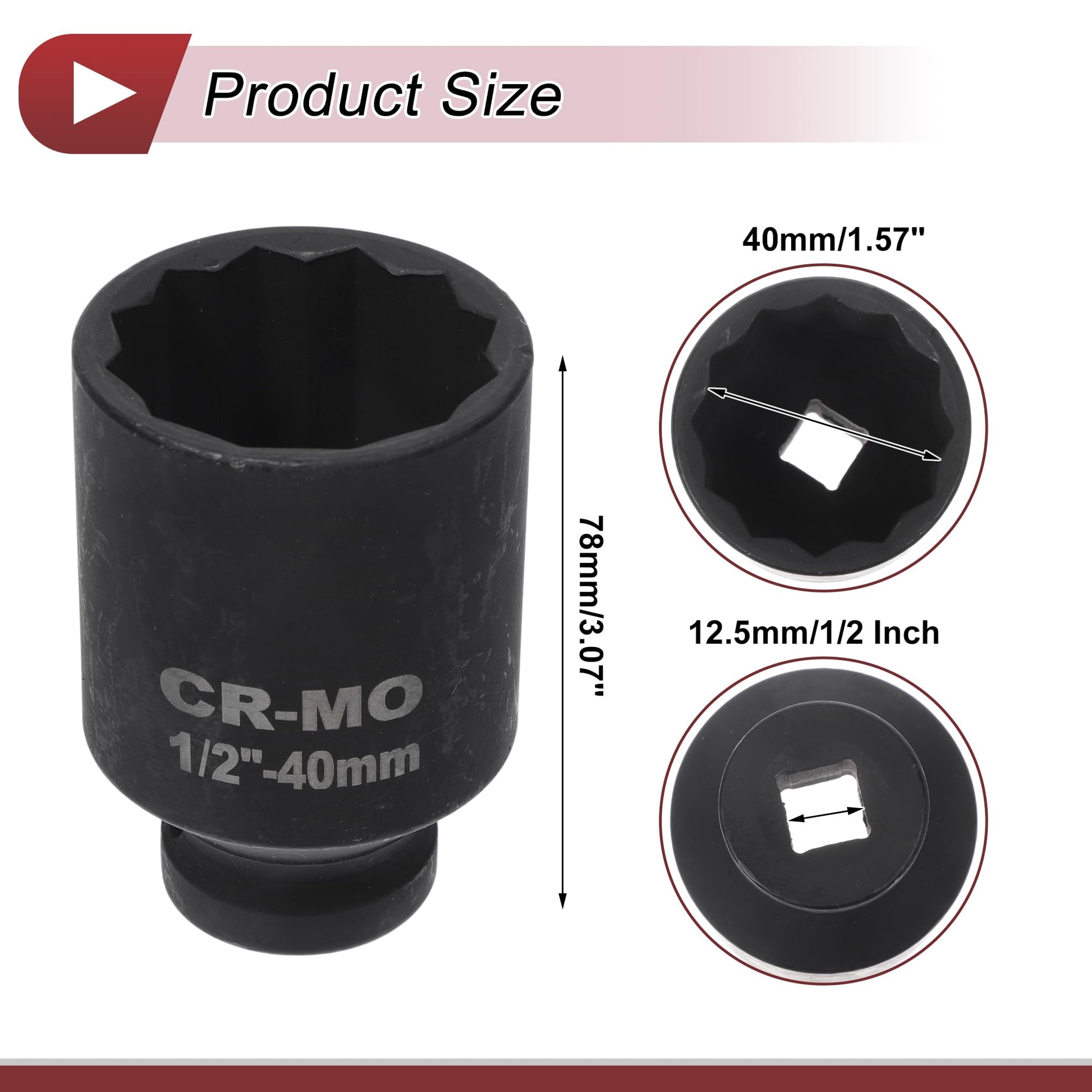 HEROFFIX 1 Pcs Impact Socket Durable Hardware Tool 78mm Black High Carbon Steel 12 Point 40mm for Car Motorcycle Dirtbike Repair 1/2 Inch Drive