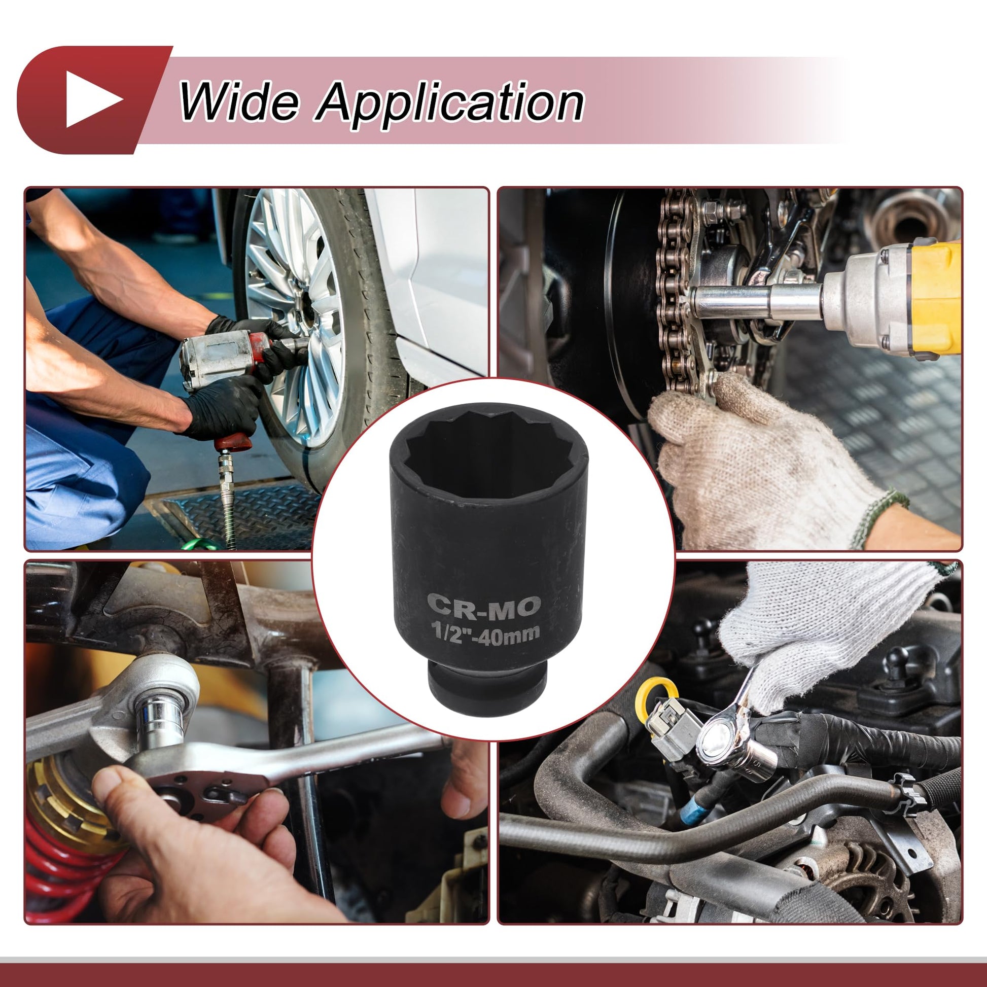 - Function:1/2 Inch Drive 12 Point Socket provides a firm grip and gives you more turning power for easy turning. The repairing tool smooth tool finish and easy to cleanup. Easily into even the most restricted spaces and still allow you to swing your wrench.