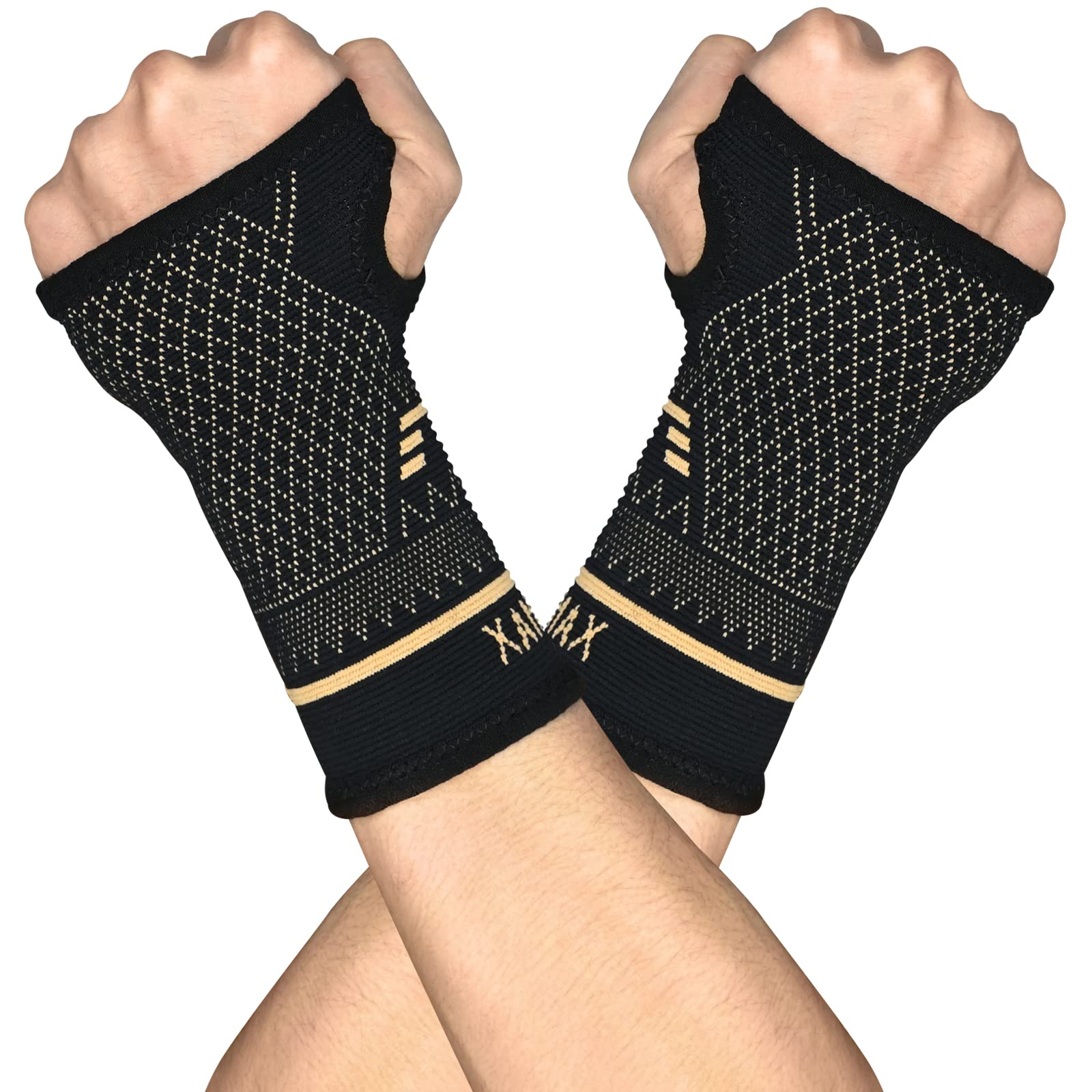 INDEEMAX Copper Wrist Compression Support Sleeve(2 Pack), Wrist Brace for Pain Relief, Arthritis, Carpal Tunnel Relief, Recovery (Large)