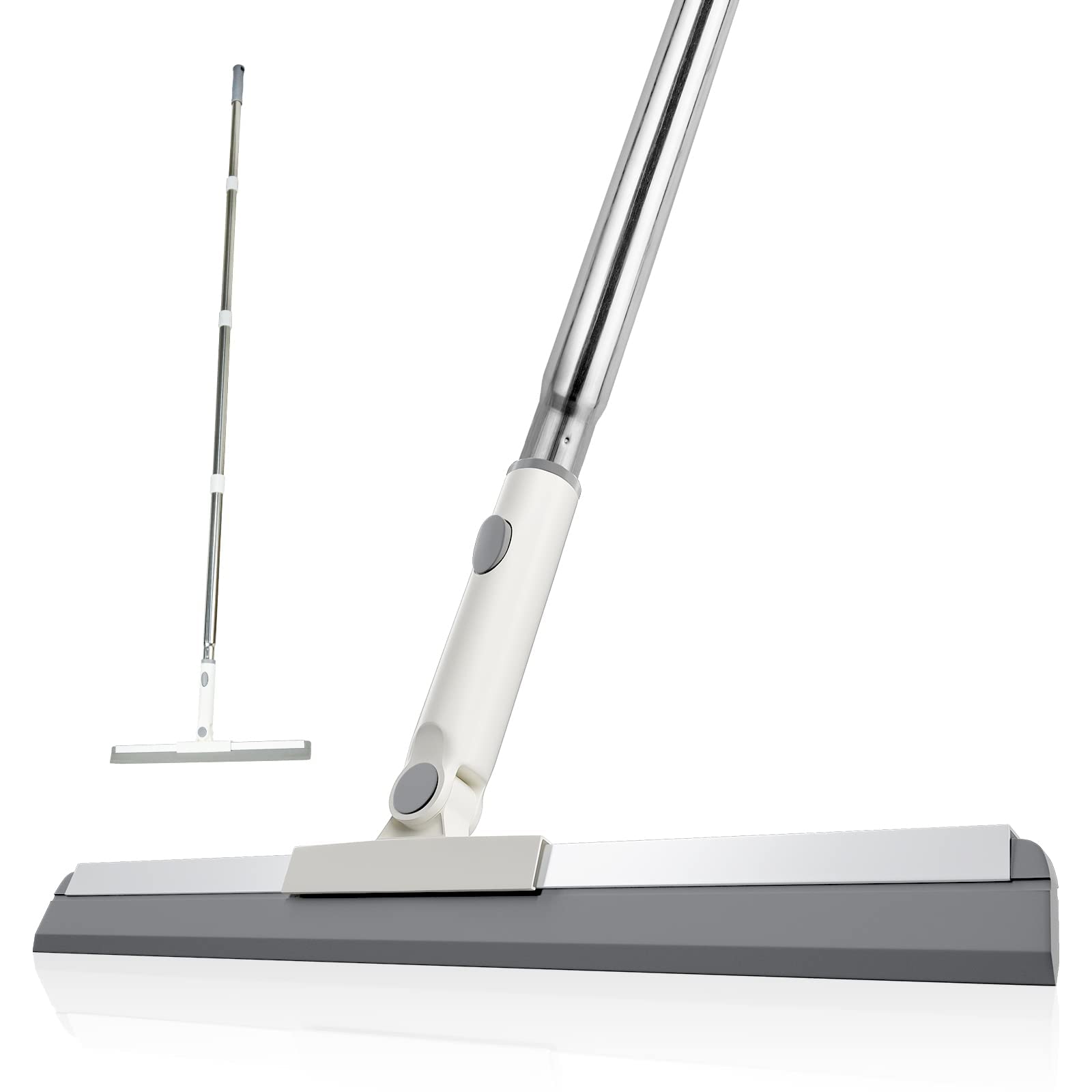 - Wide Application: This long handle shower squeegee is very effective at removing dirt, dust and water from shower tiles, glass walls, concrete floor and door and no squeaking sounds. And this floor squeegee for tile floor is ideal for cleaning crumbs, cat litter, water even mud. Both pull and push are ok. You can choose the suitable cleaning way