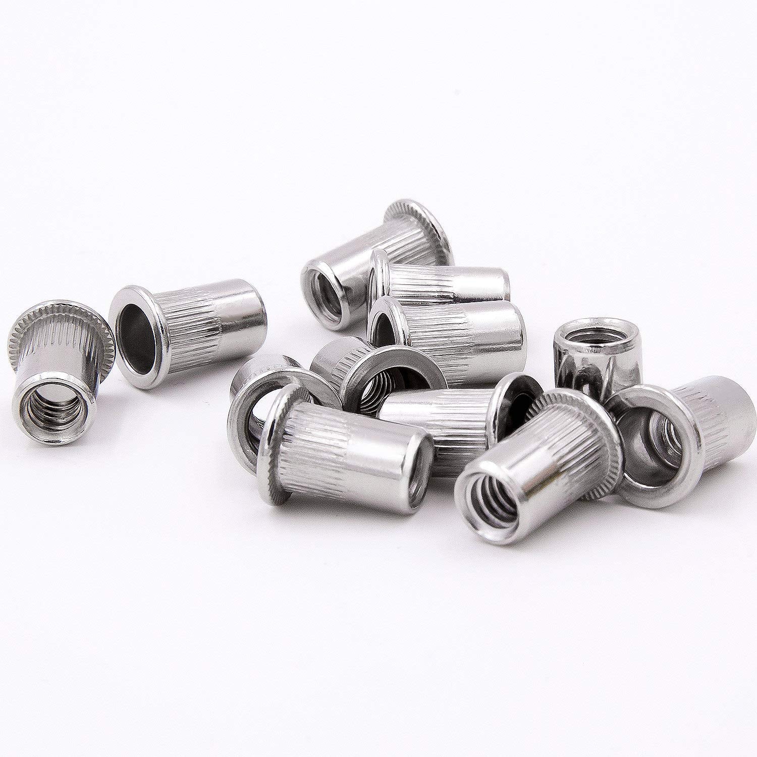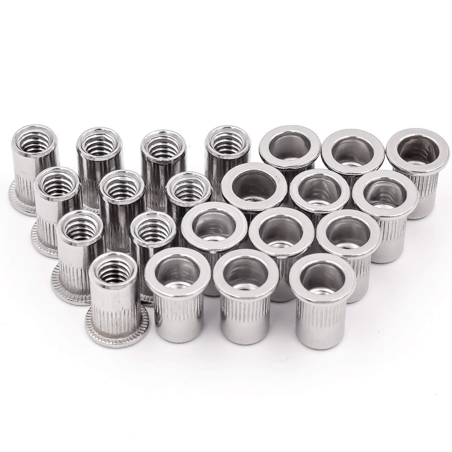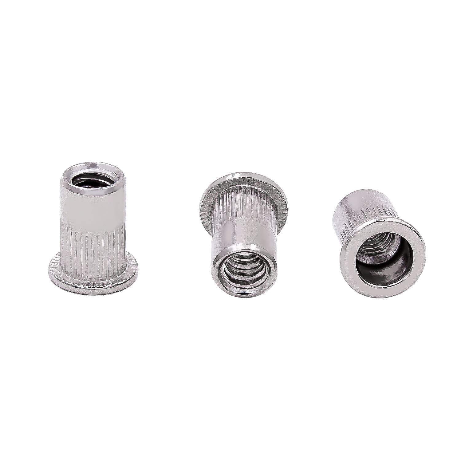 KINJOEK 100 PCS 1/4-20 Rivet Nuts, 304 Stainless Steel Threaded Insert Rivet Nut with Knurled Body
