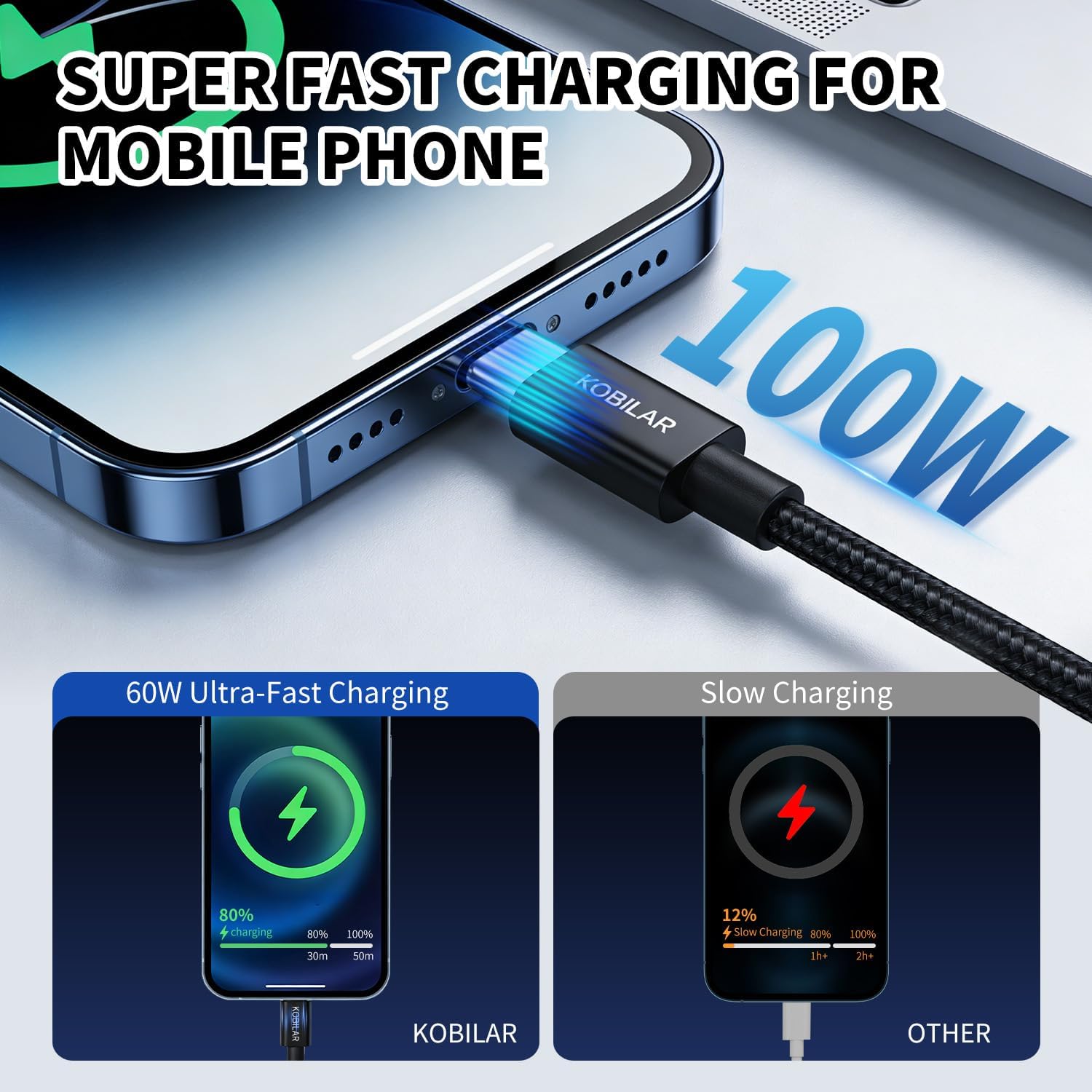 Details: Kobilar USB C to USB C Cable, 100W 5A Super Fast Charging, PD 3.0, 5-Pack (6.6ft)