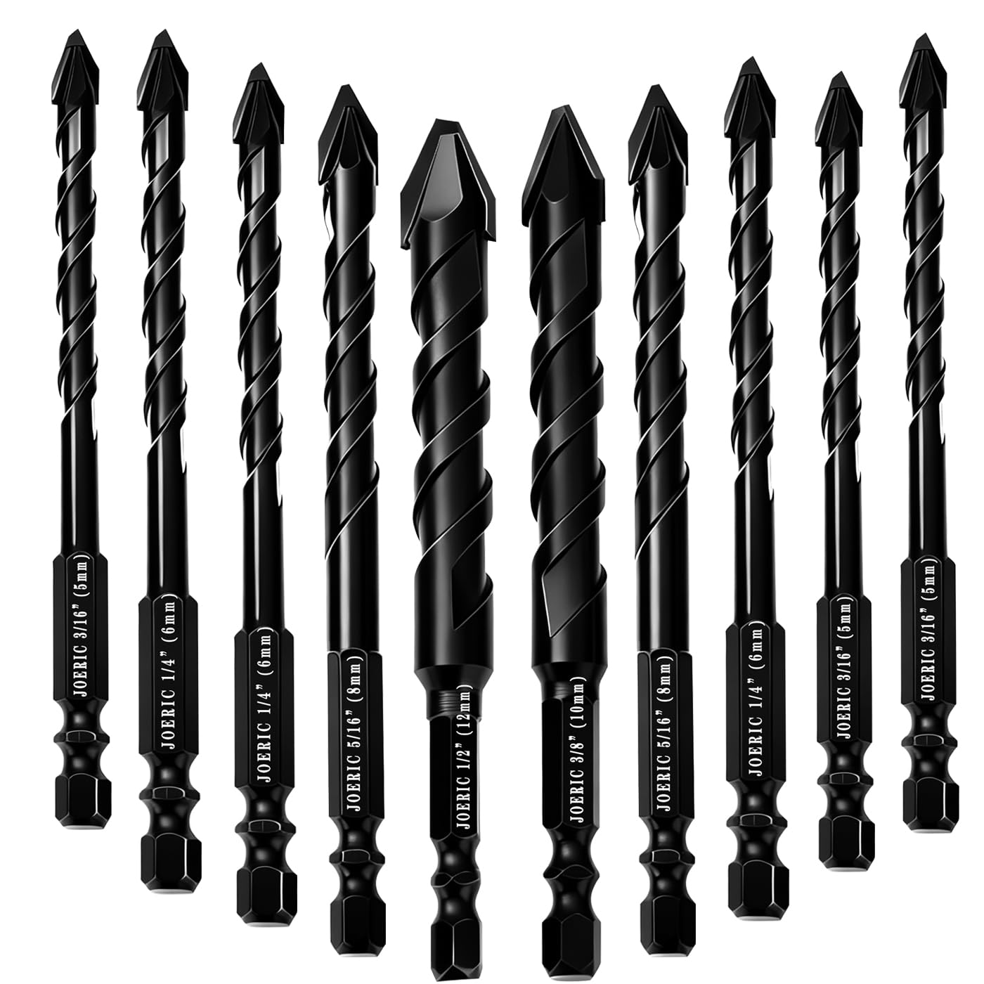 Larouoba 10pc Black Special Crooked Head Eccentric Drill Bit Set, Porcelain Tile Drill Bit Concrete Drill Bit for Glass,Brick,Plastic,Cement,Wood,Ceramic,Metal,Marble (3/16” to 1/2”).