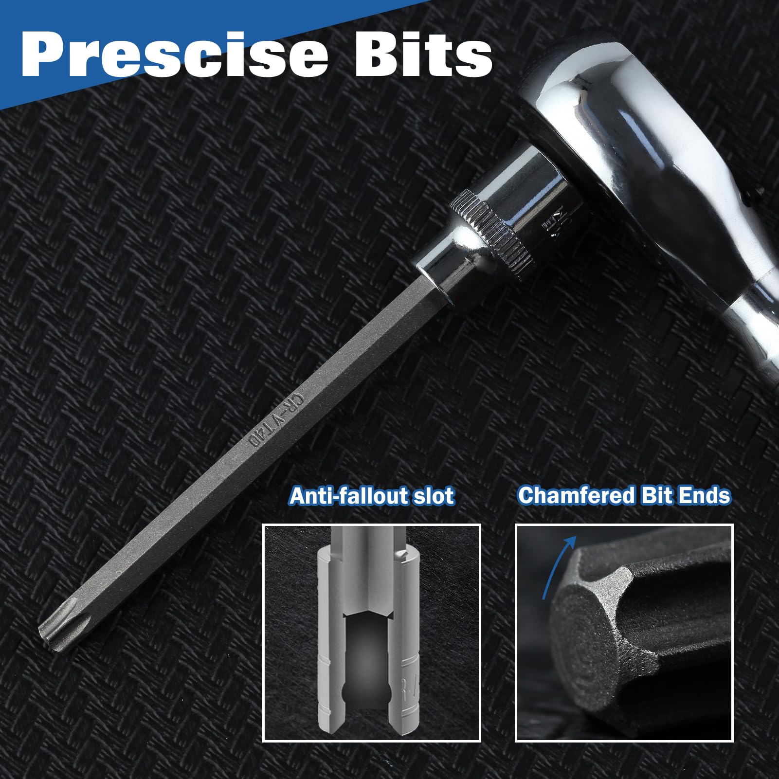 - Chamfered Ends: Accurately machined torx bits with the chamfered bit ends can be inserted into fasteners smoothly and tightly to protect both bits and fasteners from damaged edges. Ideal for auto repair, and household appliance maintenance.
