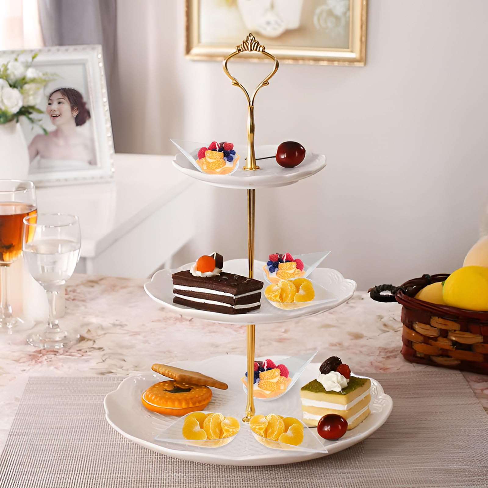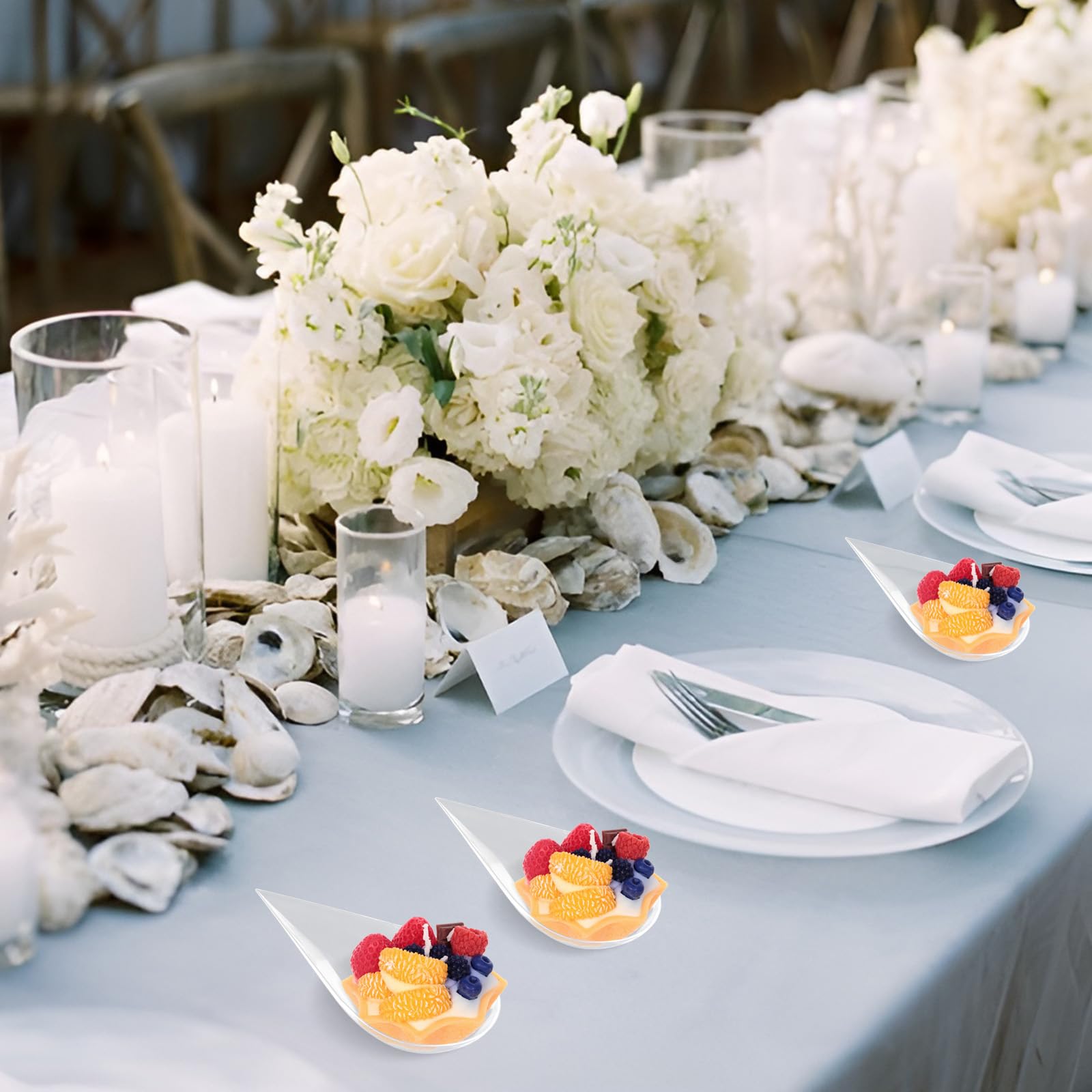 LIOUCBD 200Pcs Tear Drop Mini Appetizer Plates, Plastic Dessert Cups, Clear Tasting Spoons, Disposable Asian Spoon for Serving Small Desserts Cakes Bowls Appetizers Sample Serving Party