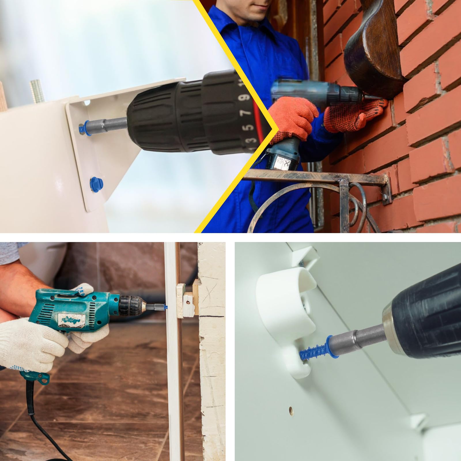 - 4️⃣Effortless installation: Our self tapping screw anchor kit, complete with drill bit and hex bit sockets, can be used directly without the need for additional tools. Concrete screws feature a unique thread design that ensures more secure screwing into concrete.