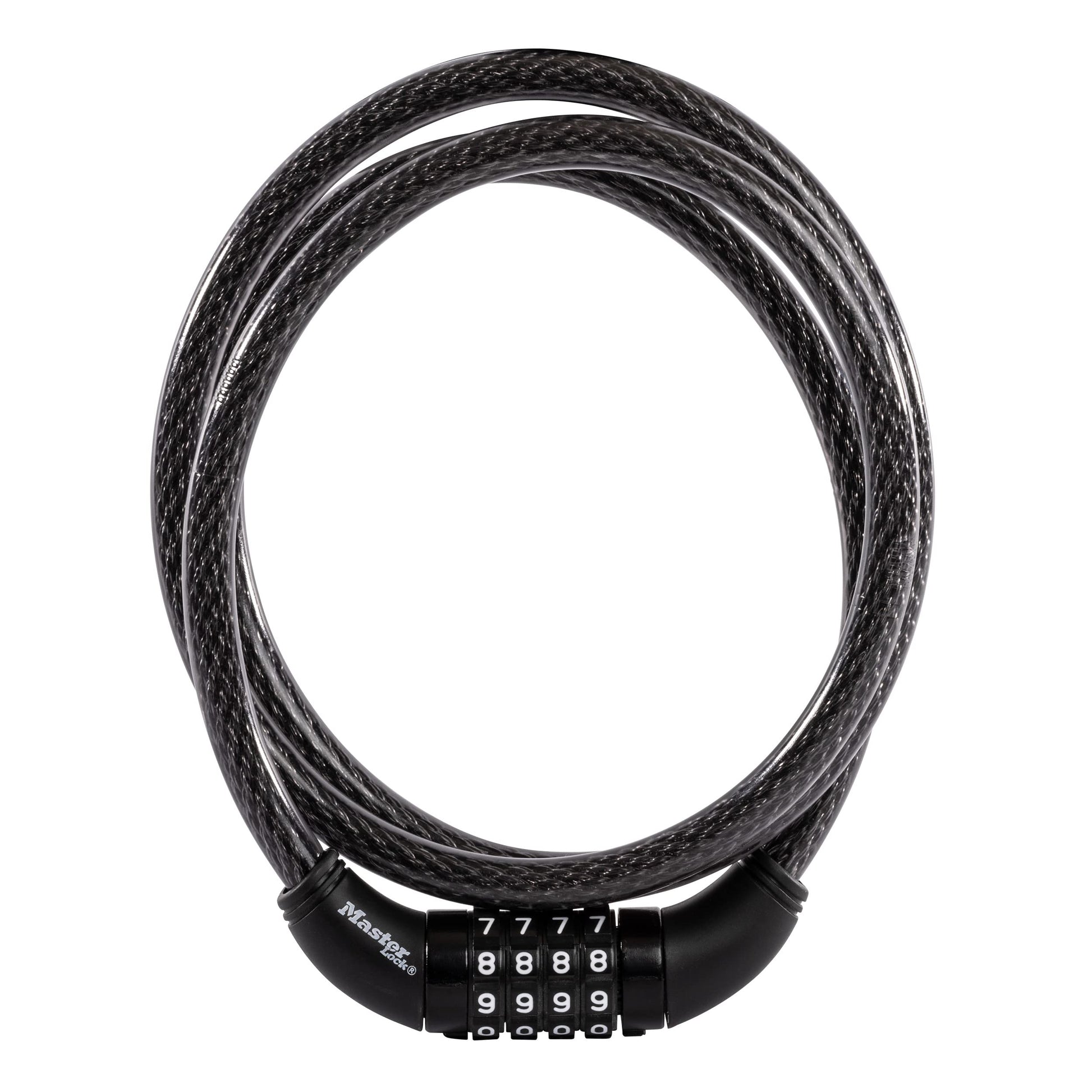 Master Lock Black Set Your Own Combination Bike Lock, Metal Cable Lock has a Weather Resistant Vinyl Coating for Outdoor Durability, 5 Feet Long, 8370D