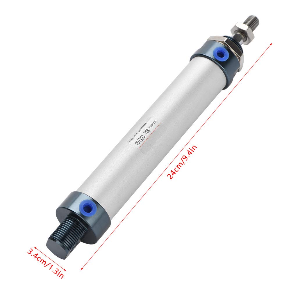 - DURABLE DESIGN: Action Type: Double acting. Material: Aluminium alloy; Sealing ring: Rubber; Working temperature: -4~158℉. Size :240 x 34mm/ 9.4" x 1.3" (L*D).