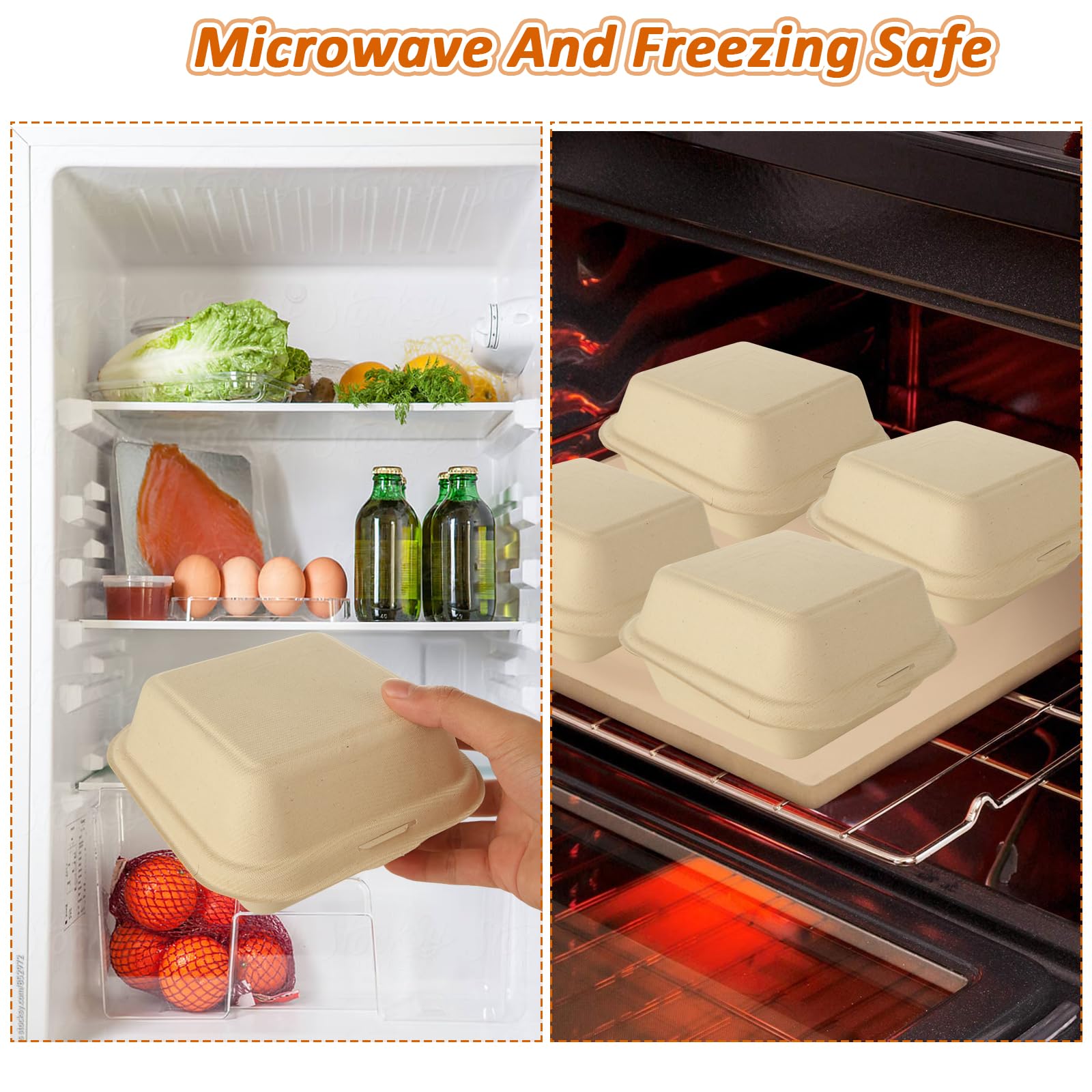 - 👍【HIGH QUALITY】MUXHEL clamshell containers are made of sturdy paper material, safe for hot and cold food, and can be heated in the microwave.