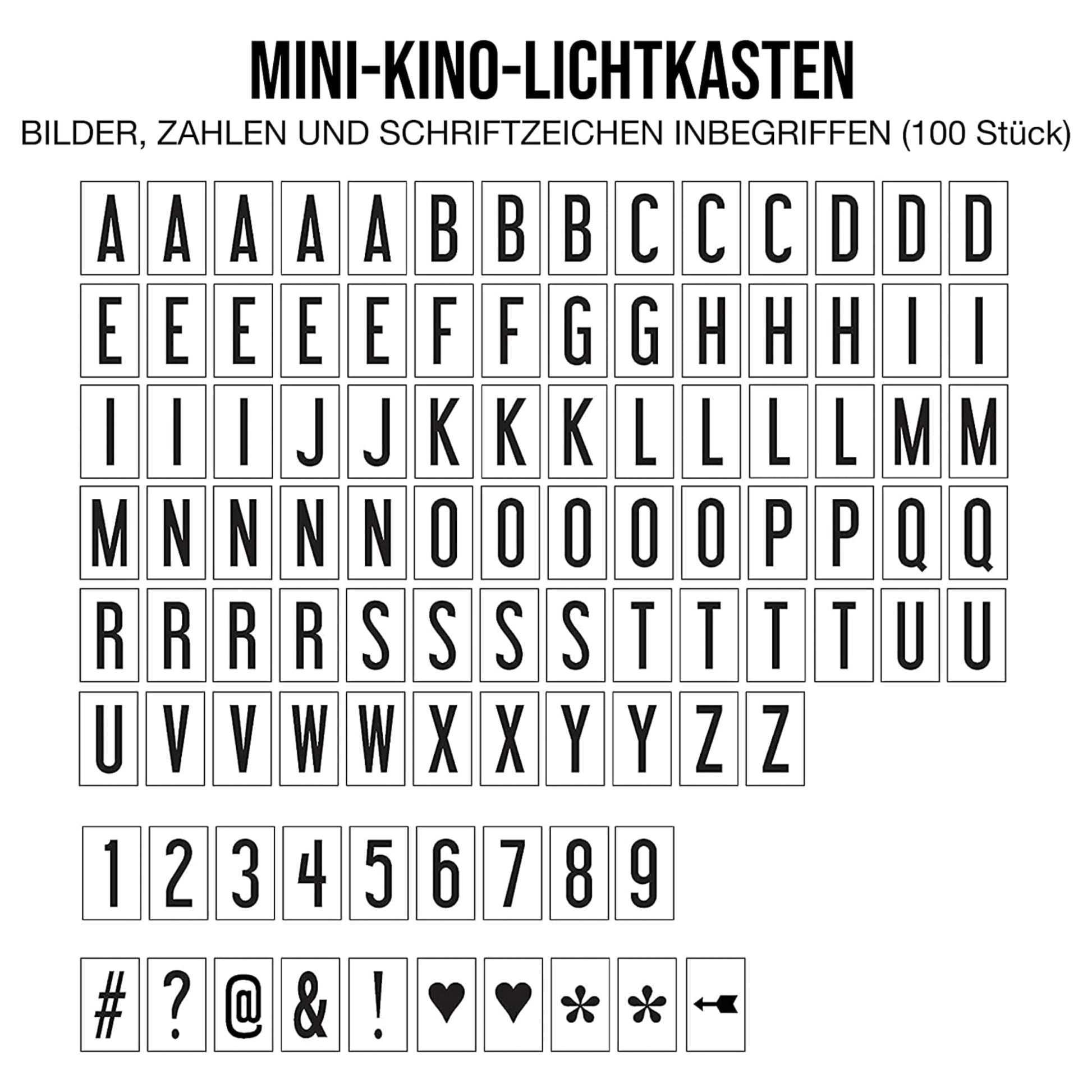 - 𝗙𝗜𝗧𝗦 𝗔𝗡𝗬𝗪𝗛𝗘𝗥𝗘 - This mini cinema lightbox sign fits 8 tiles across, with size 8"x6", 20cmx15cm, A5 size ; Including 100 light box letters, numbers, characters, & symbols ; Battery powered (6xAAA not included); or USB powered (micro USB included)