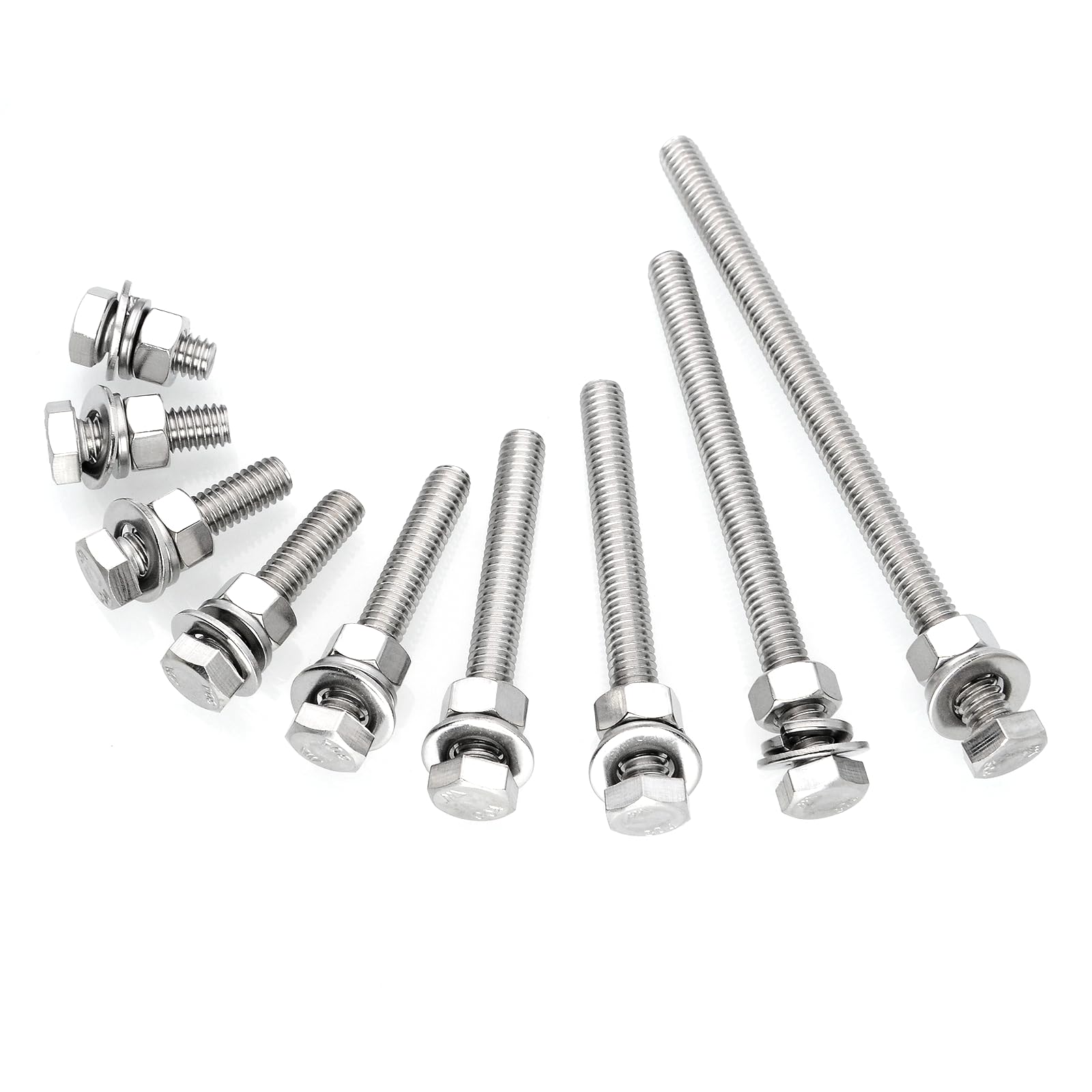 - MATERIAL - 304 stainless steel material bolts and nuts kit. Mywish 304 stainless steel products have been rigorously tested, higher heat resistance, better corrosion and anti-rust performance in different extreme environment. Strong solid structure and long-lasting nut and bolt assortment. Please note that the magnetic properties of 304 steel always show weak magnetic properties due to the structure transformation reasons. Nuts and bolts, stainless steel bolts and nuts kit, metric bolt assortment screws and nuts.
