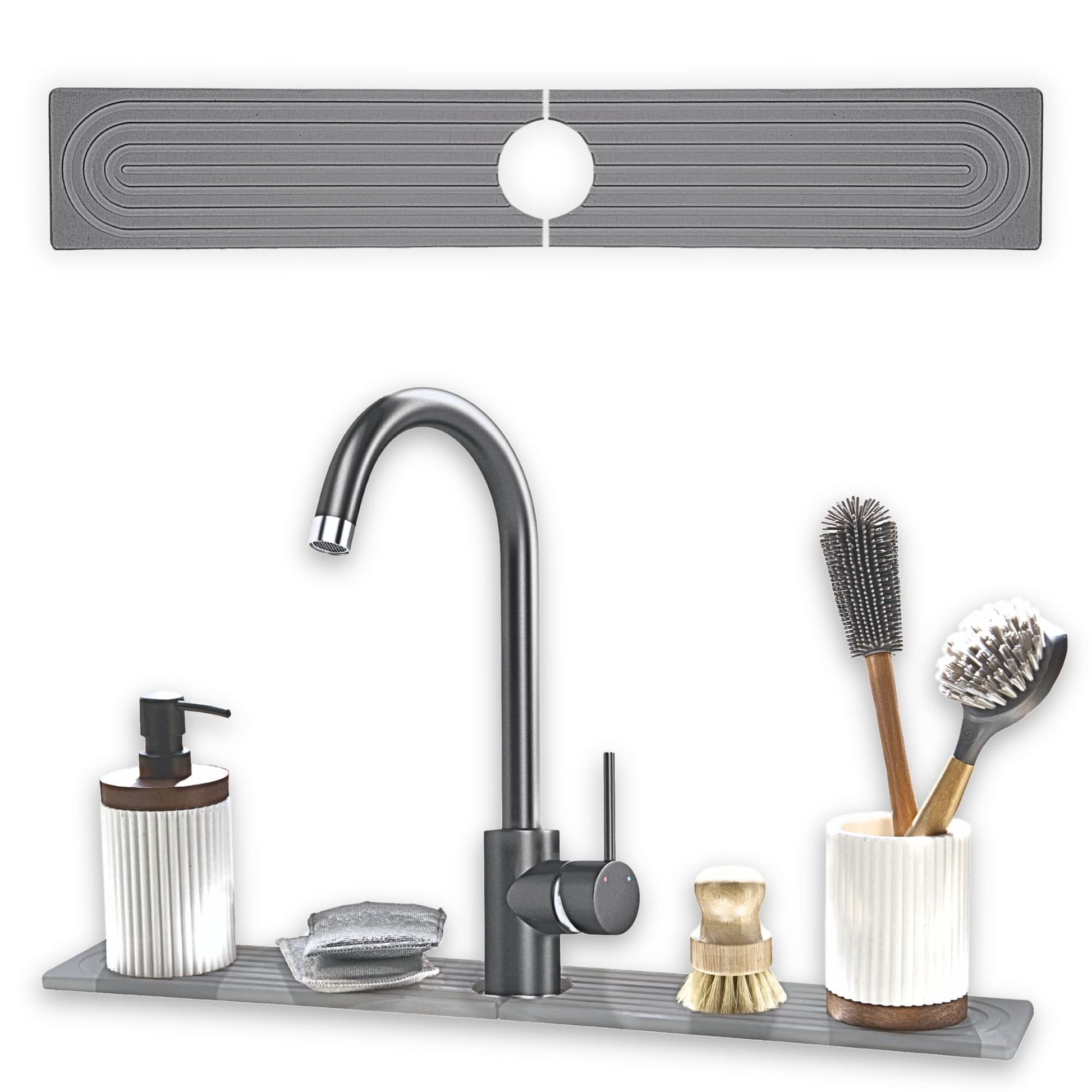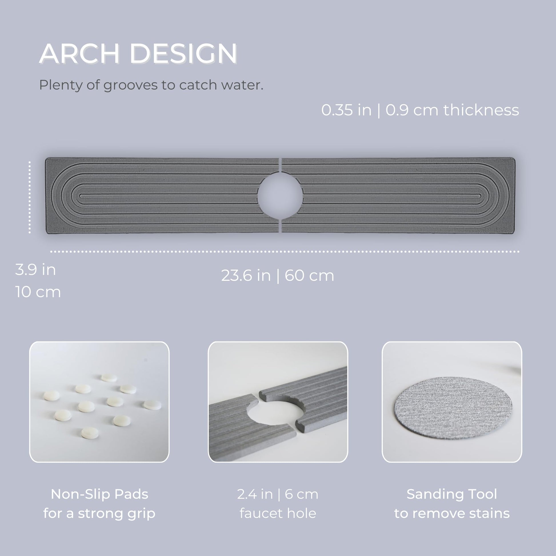 • NON-SLIP FEATURES - Our stone sink faucet mat has plenty of grooves to catch water, and comes with ten non-slip rubber pads providing grip on any surfaces, even in wet condition. Experience quick 360° drying with organised, safe and easy access to your bathroom and kitchen essentials.