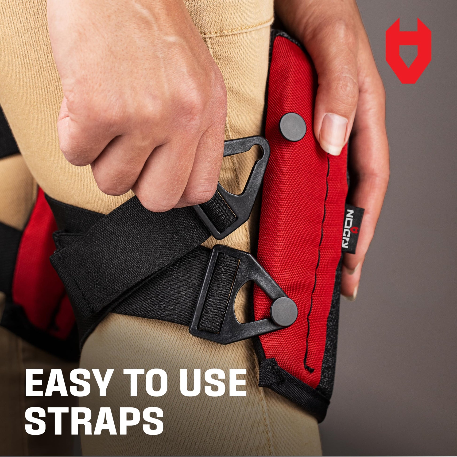 NoCry Flooring, Roofing and Gardening Knee Pads for Men and Women with Thick Soft Foam Padding, Non Slip Leather Cover, Strong Double Straps and Adjustable Easy-Fix Clips; Kneeling Pads for Work. Red